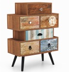 Nowoczesne wzornictwo jest bardzo spektakularne, klimatyczne i wprowadza kolor do pomieszczenia. Korpus mebla wykonany jest na wzór starego drewna. Fronty zaś to fantazyjne zestawienie kolorystyczne - każdy jest unikalny i oryginalny. Efekt starego mebla z odzysku jest niezwykle ciekawy. Kilka frontów posiada efekt starej farby z łuszczeniami i "przecierkami".