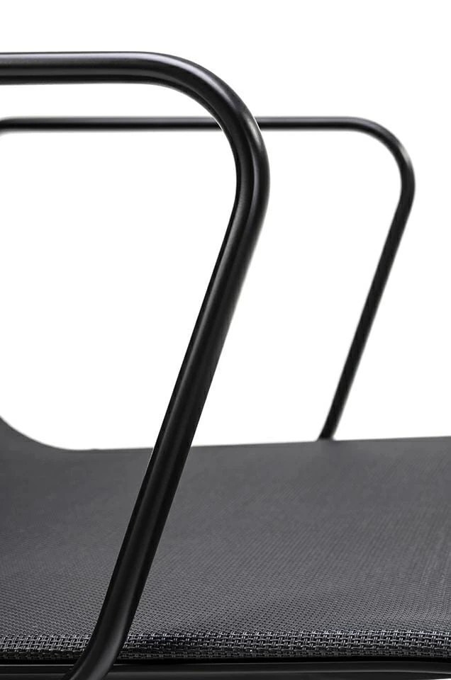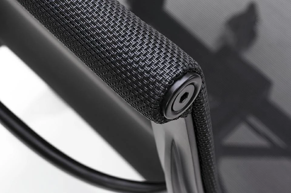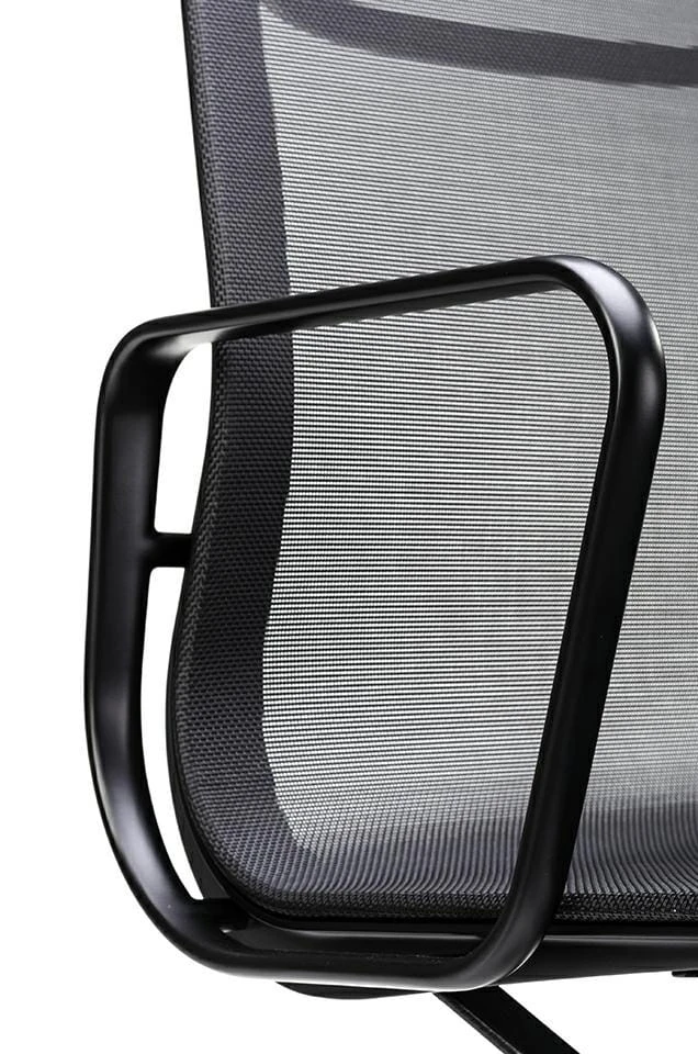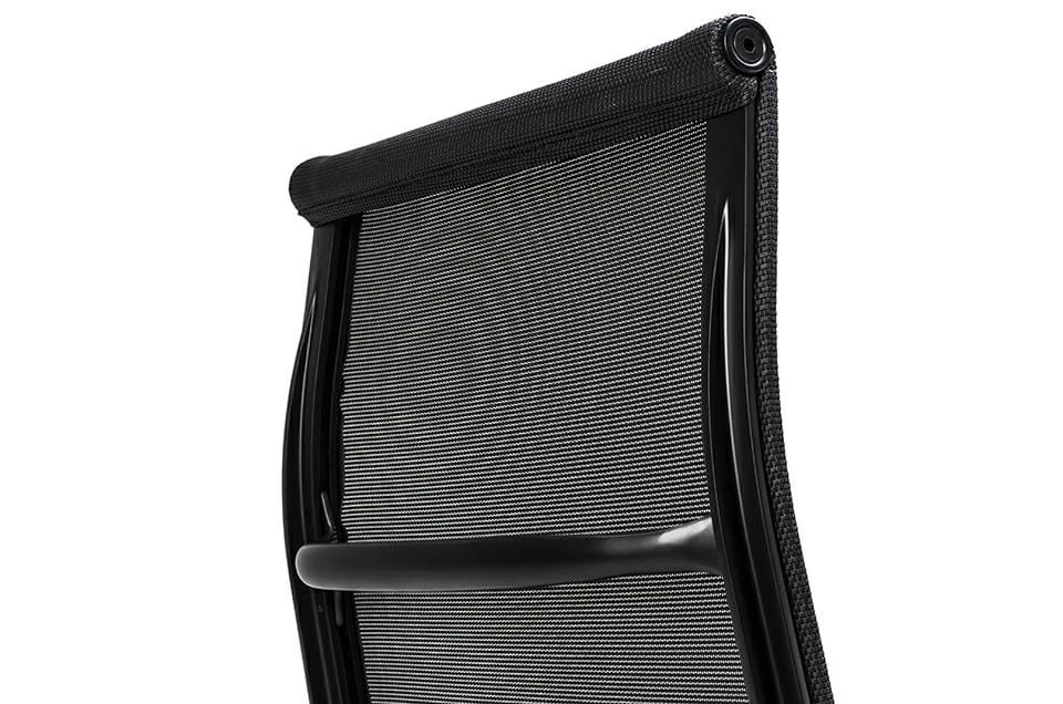 Wersja fotela tapicerowana siatką z podstawą, korpusem oraz podłokietnikami lakierowanymi na kolor czarny satynowy