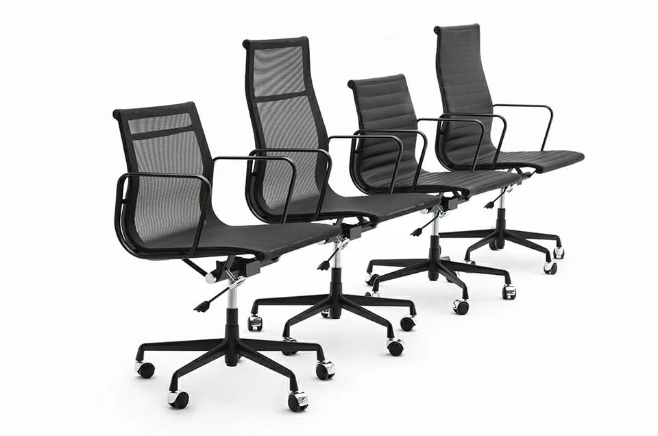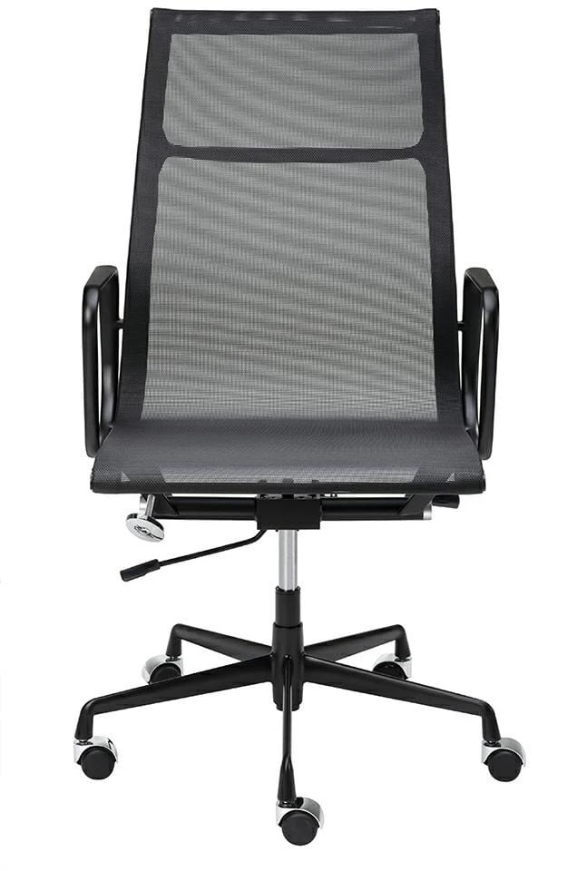 Fotel Aeron to elegancki i nowoczesny mebel biurowy, który łączy funkcjonalność z estetyką. Tapicerowany mocną i przewiewną siatką, co nadaje mu luksusowy wygląd i zapewnia trwałość. Jego ergonomicznie wyprofilowane siedzisko i wysokie oparcie gwarantują wygodę nawet podczas długich godzin pracy. Konstrukcja oparta na lakierowanej na czarno podstawie z aluminium zapewnia stabilność i wytrzymałość.