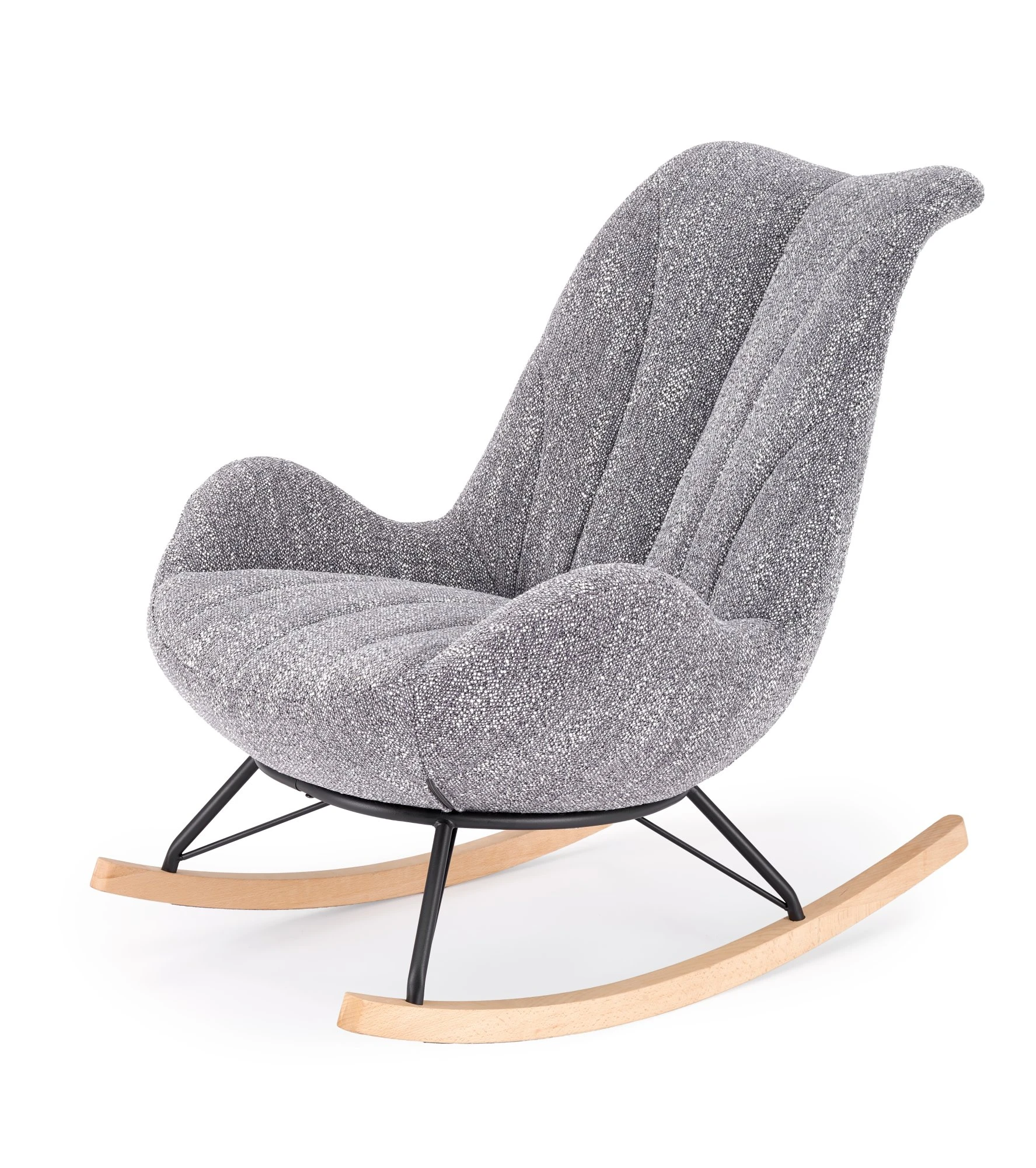 - nowoczesny fotel bujany w modnym popielatym kolorze