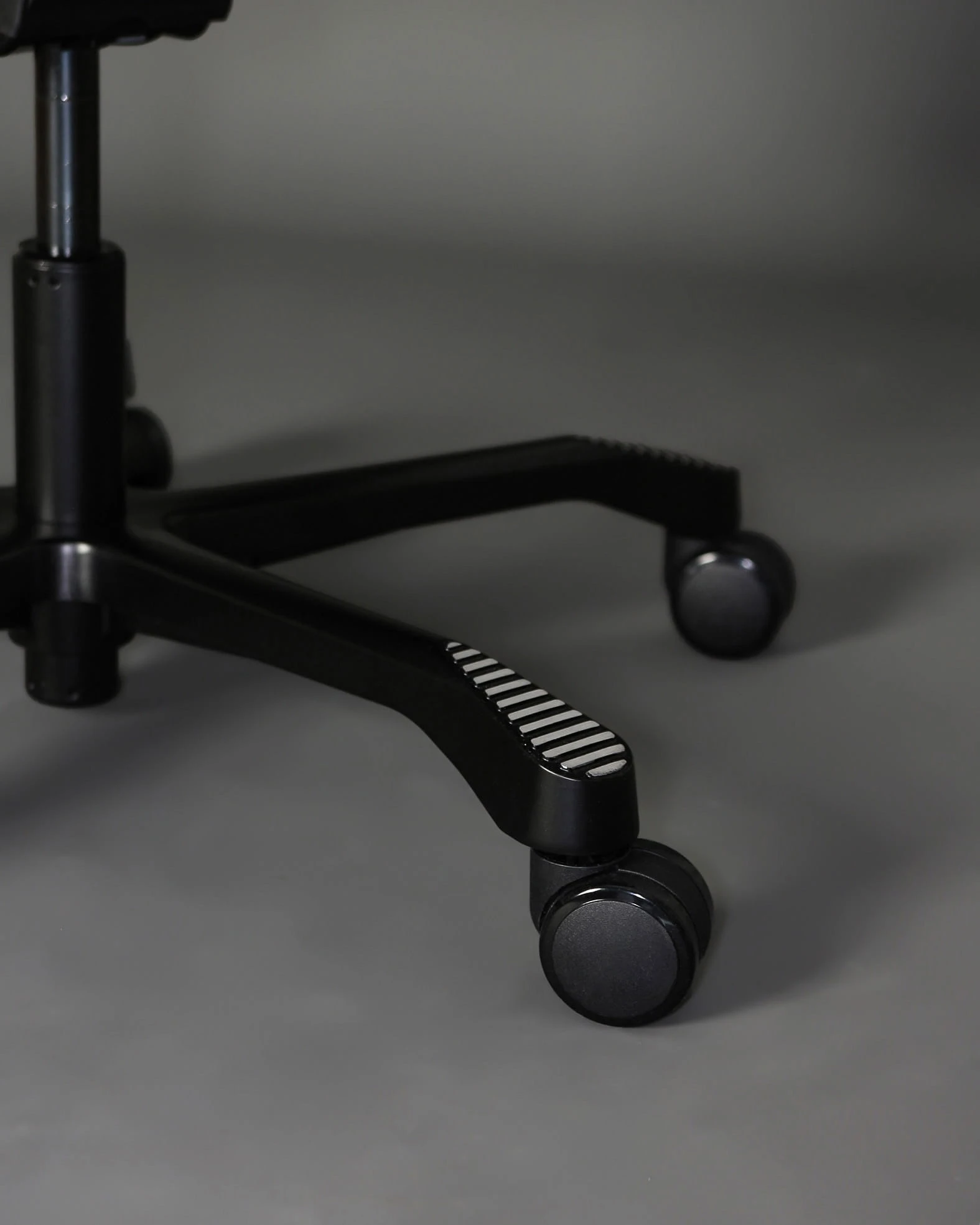 Podstawa fotela wykonana jest z aluminium lakierowanego na kolor czarny - jest stabilna i wytrzymała a dodatkowym atutem jest łatwość utrzymania jej w czystości.