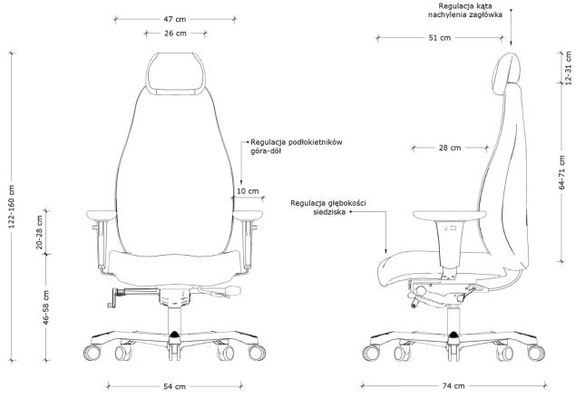 Fotel ergonomiczny PIU posiada możliwość regulacji kilku elementów: