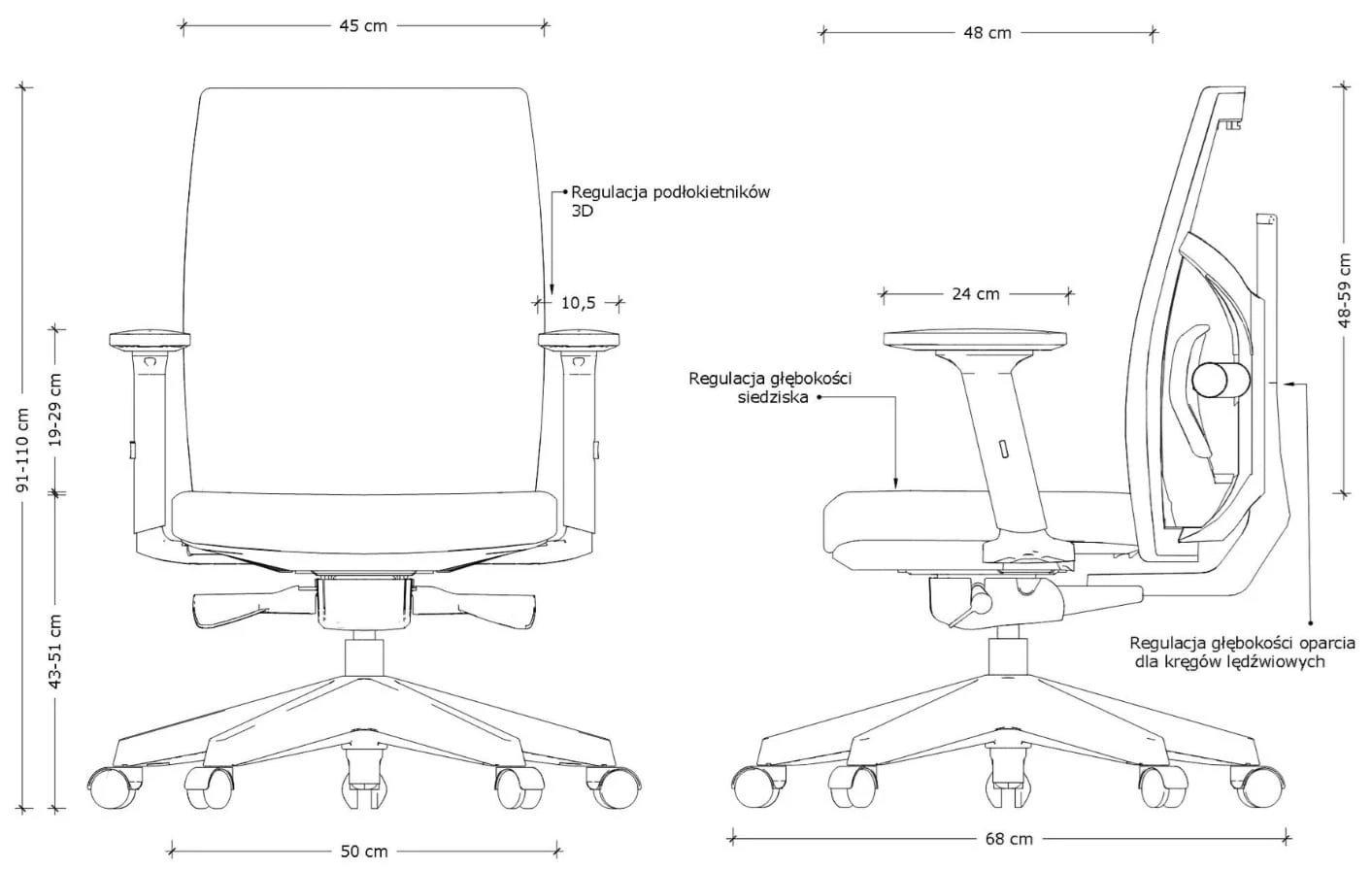 Ten ergonomiczny fotel biurowy spełnia wymagania normy BHP, co czyni go doskonałym wyborem do profesjonalnych przestrzeni biurowych, open space’ów oraz home office. Regulowane elementy fotela pozwalają na dopasowanie go do indywidualnych potrzeb użytkownika, wspierając prawidłową postawę i redukując napięcie pleców.