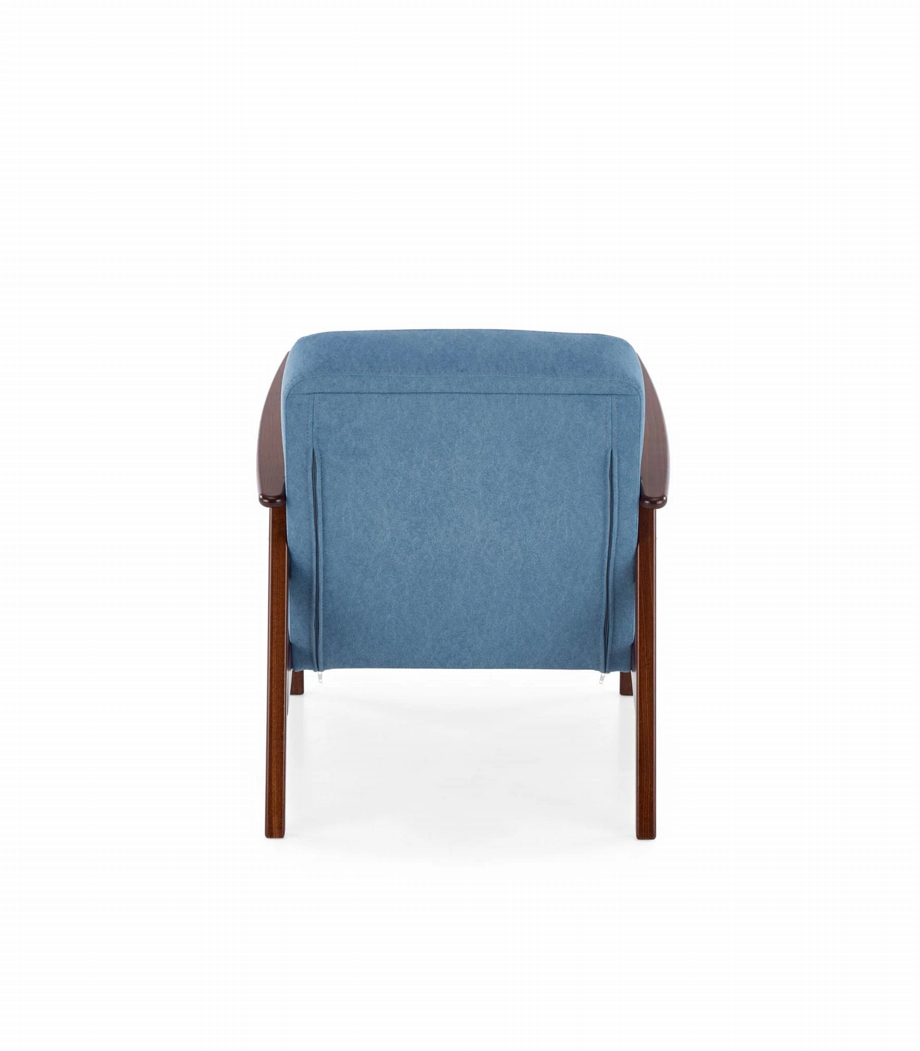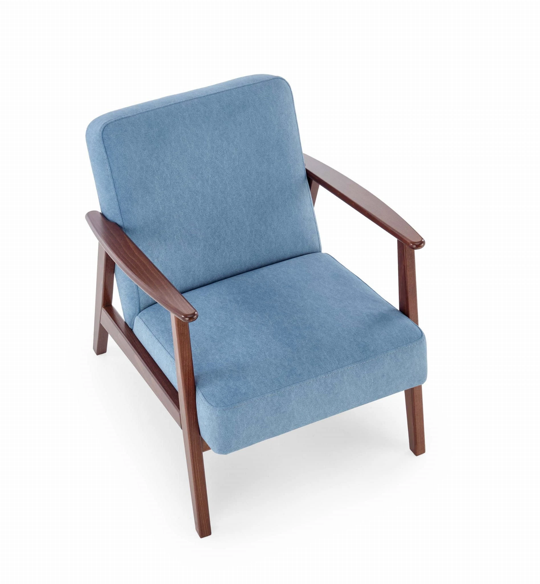 Stylowy fotel w klimacie PRL przywoła wiele wspomnień. Prostota wykonania łączy się z klasycznym połączeniem kontrastujących ze sobą kolorów takich jak niebieski i orzech nadając fotelowi szyk i elegancję. Grube i miękkie siedzisko umili niejedną chwilę odpoczynku po ciężkim dniu pracy.