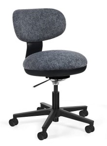 Mechanizm balansujący 3D. Regulacja wysokości siedziska. W wersji z oparciem kąt nachylenia oparcia dopasowuje się do pleców użytkownika, zakres do 15°. Fotel jest obrotowy.