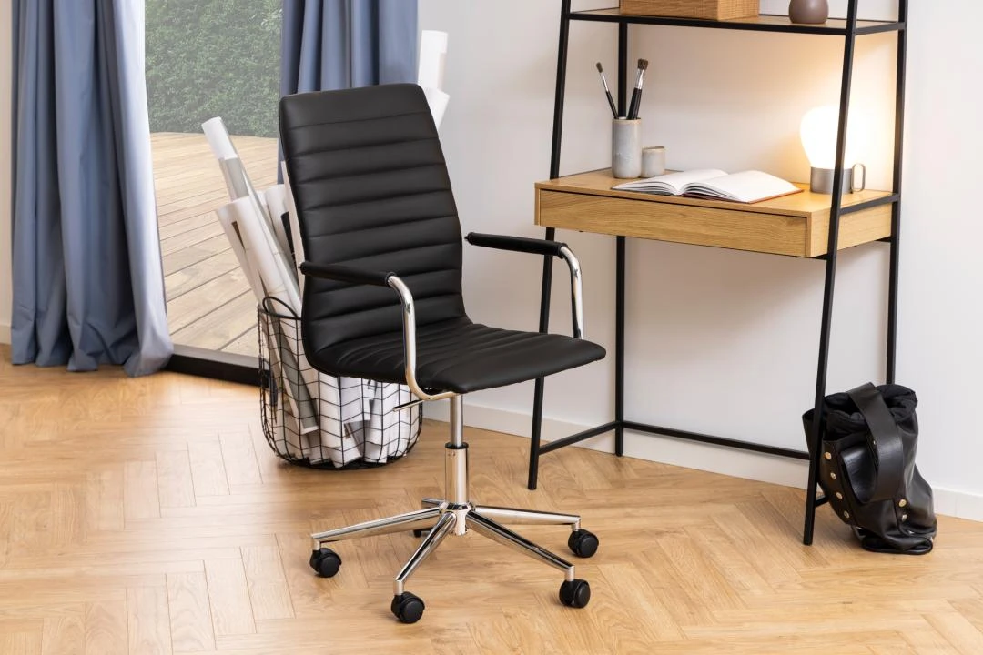Fotel biurowy Winslow czarna ekoskóra chrom