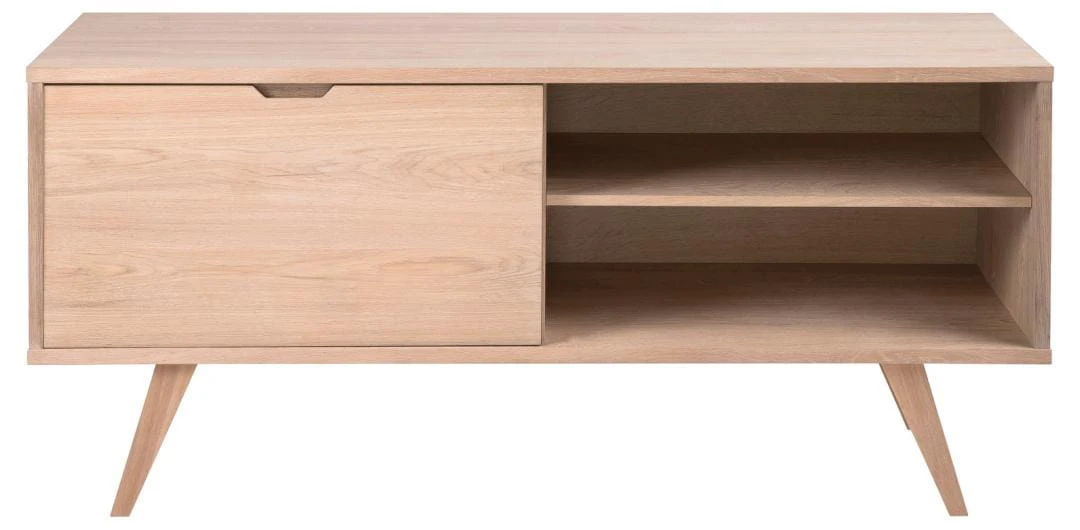 Komoda A-Line w całości wykonany jest z materiałów w kolorze dębu bielonego - nadaje to elaganckiegi i nowocznego wyglądu. Kolor ten nadaje meblowi również wyrafinowanego charakteru co sprawia, że A-Line wzbogaca wystrój każdego pomieszczenia.