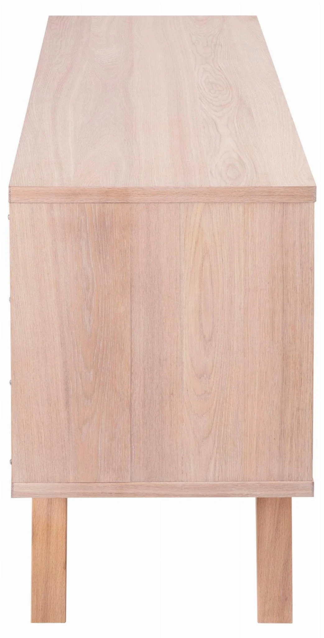 Komoda A-Line posiada nogi wykonane z forniru w kolorze dębu bielonego. Nogi posiadają stopki zabezpieczające podłoge przed zarysowaniem.