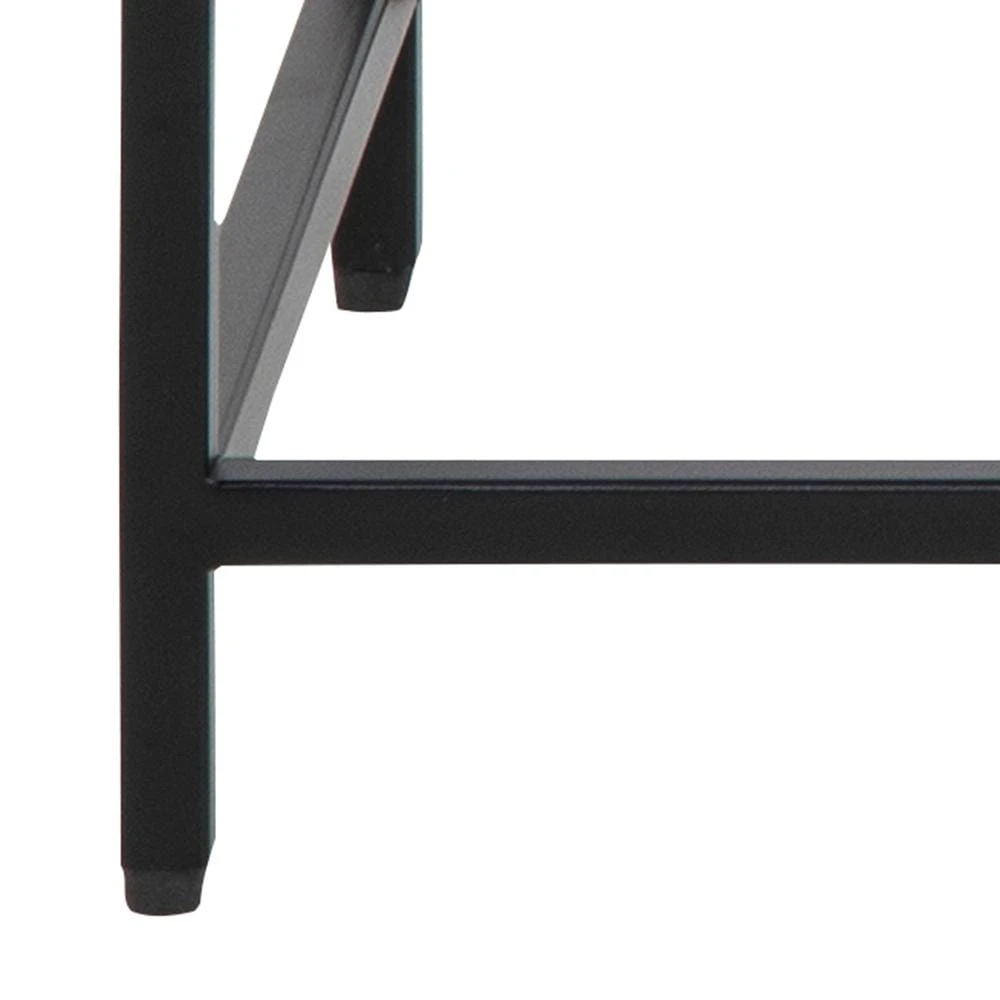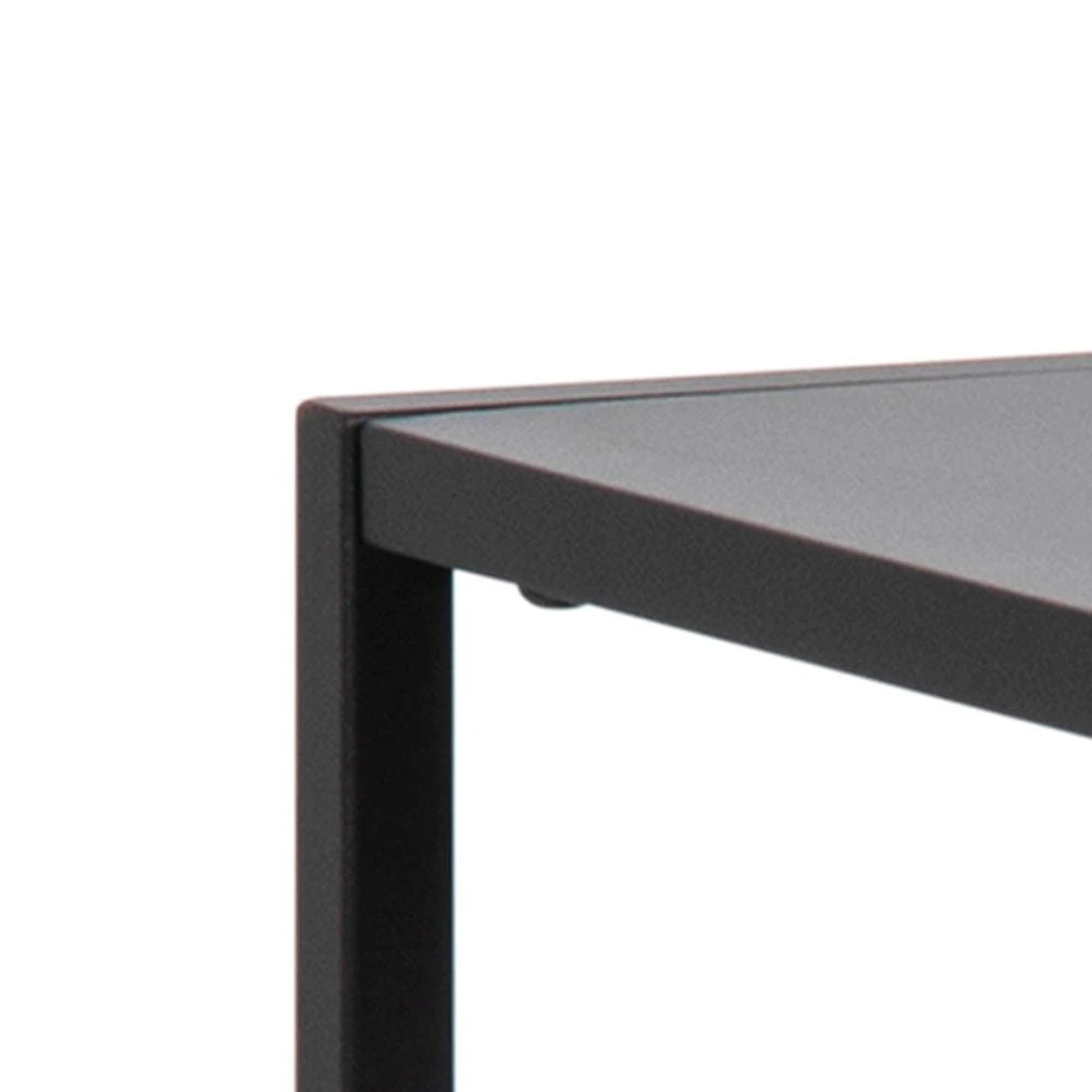 Stelaż konsolki Newcastle wykonany jest ze stali malowanej proszkowo na kolor czarny. Nogi posiadają specjalne nakładki zabezpieczające podłoge przed zarysowaniem.