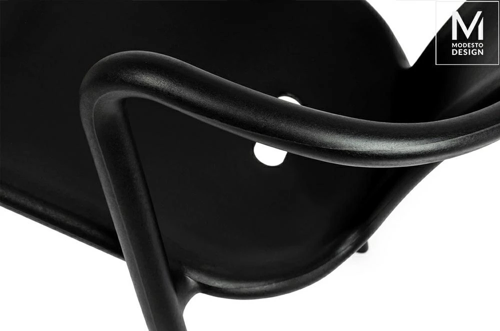 Lekki jak powietrze design krzesła wpisuje się w nowoczesne podejście projektantów do tworzenia mebli użytkowych. Krzesło Air wykonane jest z czarnego wykończonego matowo polipropylenu.