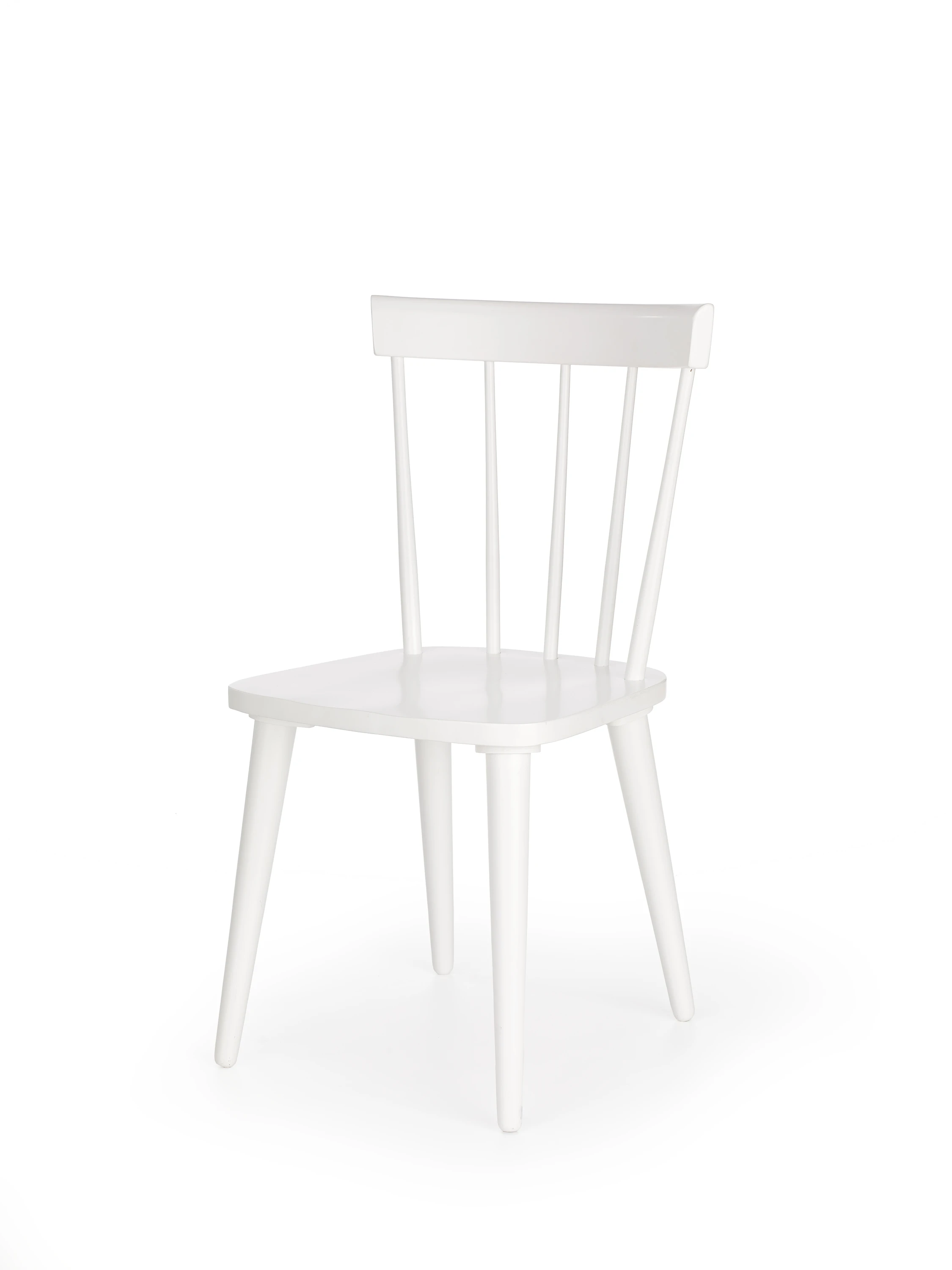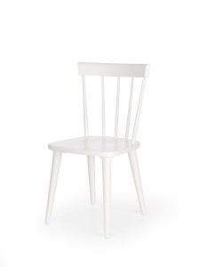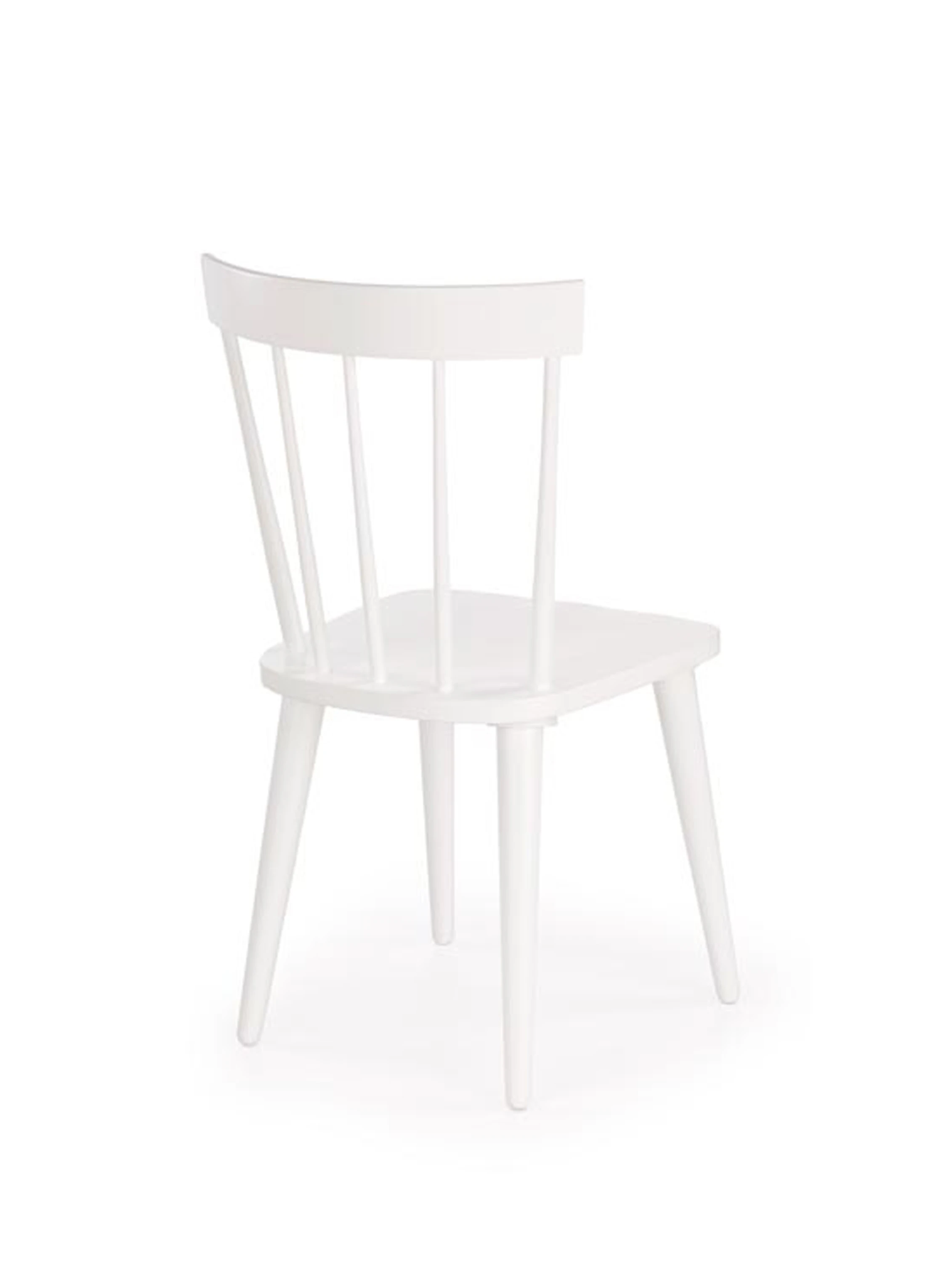 Drewno jest lakierowane na wysoki połysk na kolor biały. Płaskie, klasyczne siedzisko posiada oparcie składające się z pięciu elementów. Oparcie jest lekko zaokrąglone przez co lepiej współgra z plecami użytkownika.