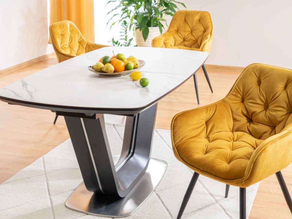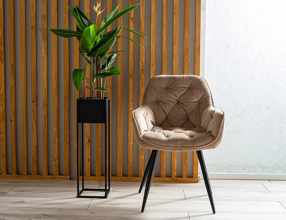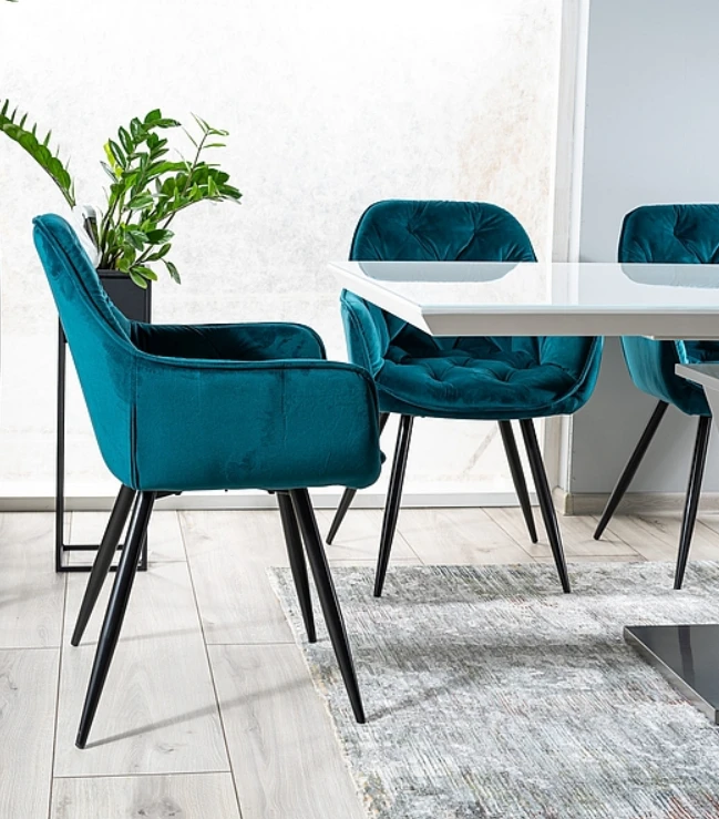 Krzesło jest pikowane na od wewnątrz, co niewątpliwie nadaje mu uroku - widać ewidentne nawiązania do stylu glamour - cieszącego się dużym zainteresowaniem projektantów wnętrz.