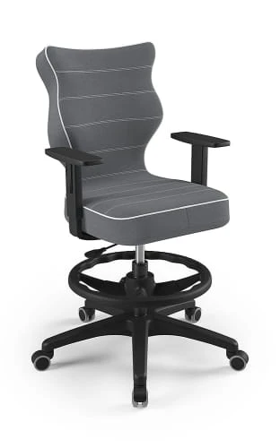 Ergonomiczne krzesło Duo z podnóżkiem w formie ringu posiada specjalny profil, który zapewnia prawidłową postawę podczas nauki czy zabawy.