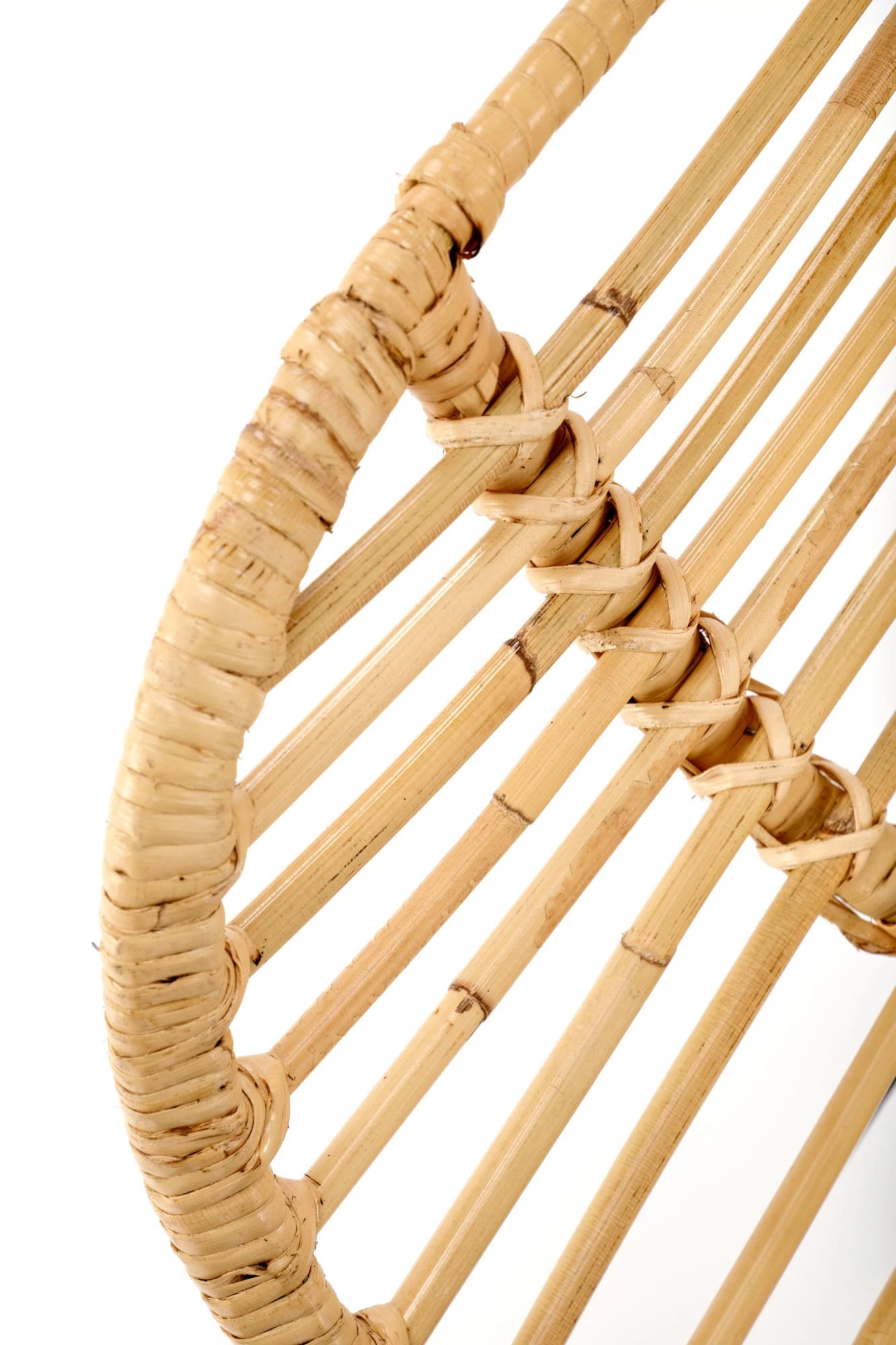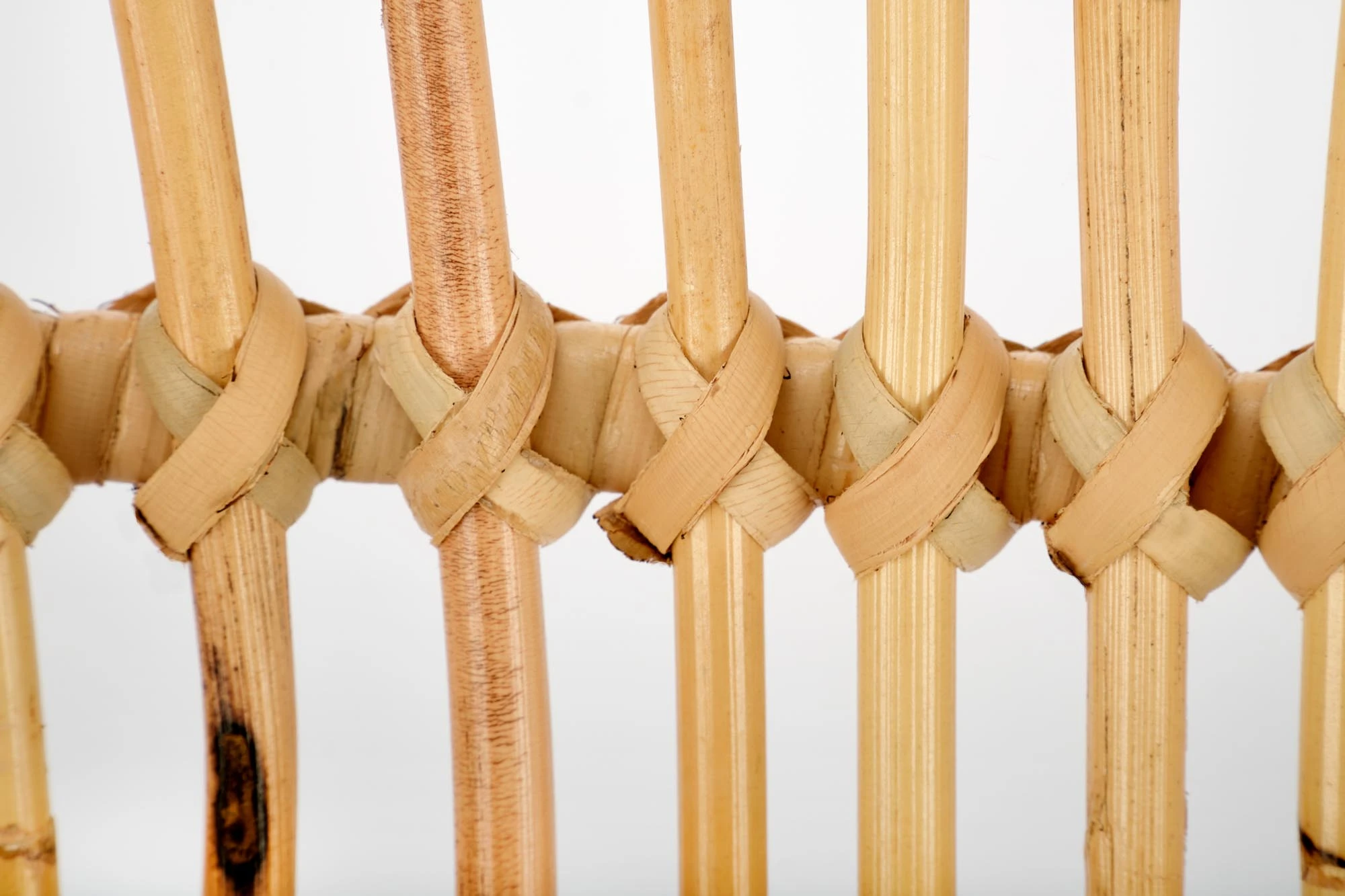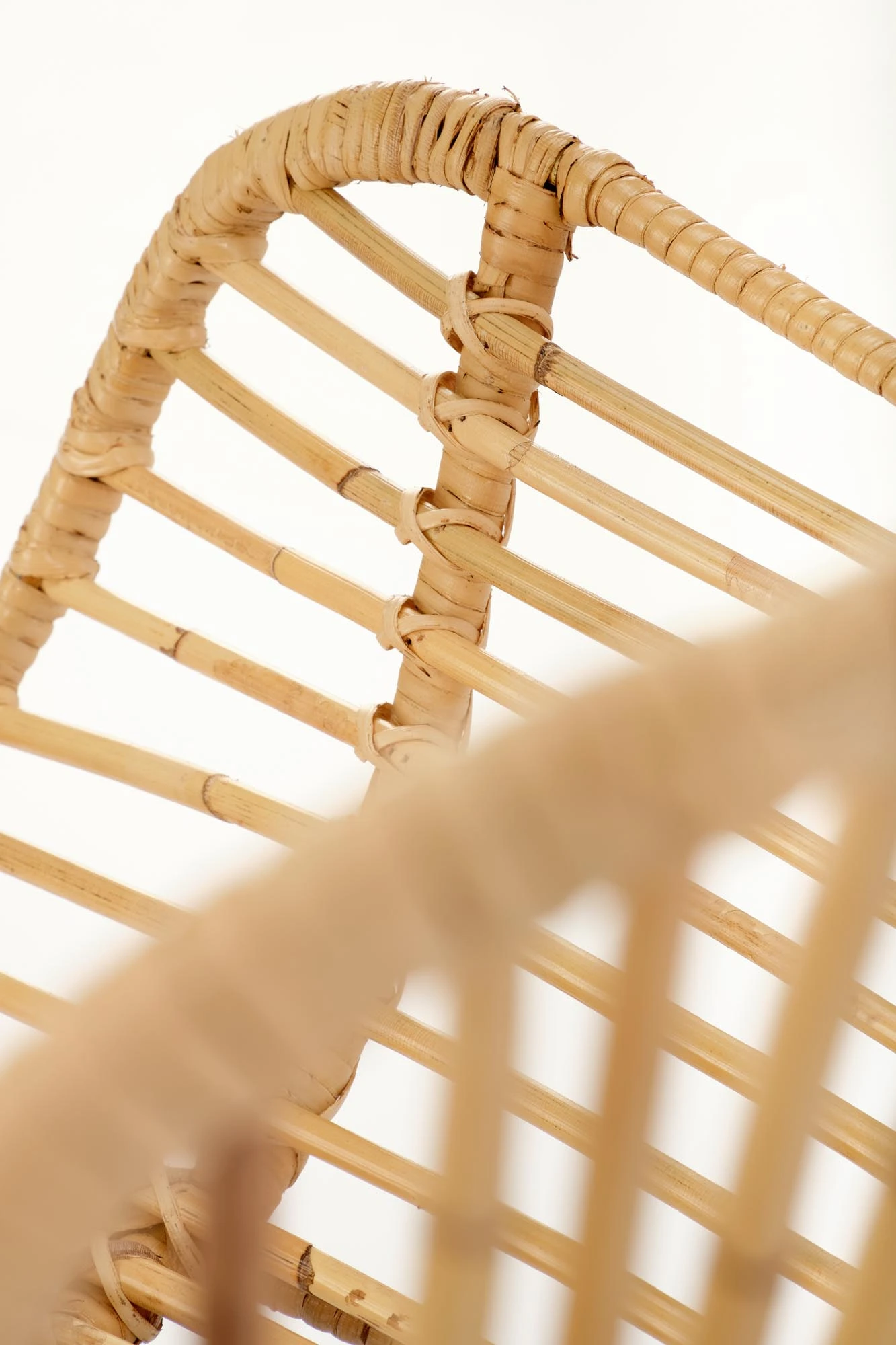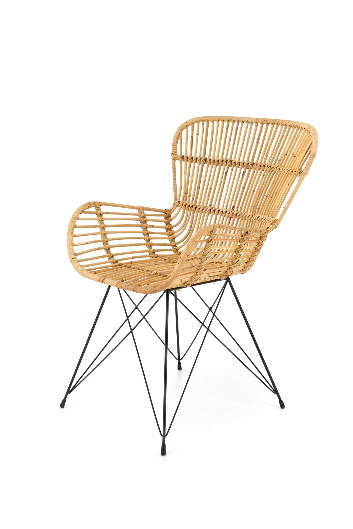 Rattan naturalny nadaje lekkości krzesłu oraz jest materiałem ekologicznym. Rattan dobrze znosi zewnętrzne warunki atmosferyczne aczkolwiek nie zalecane jest pozostawienie krzesła na zewnątrz ze względu na metalową konstrukcję.