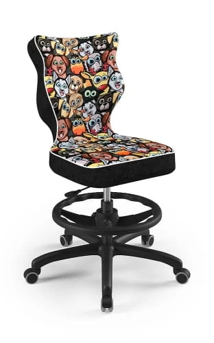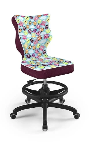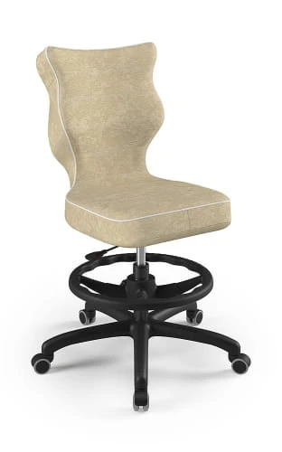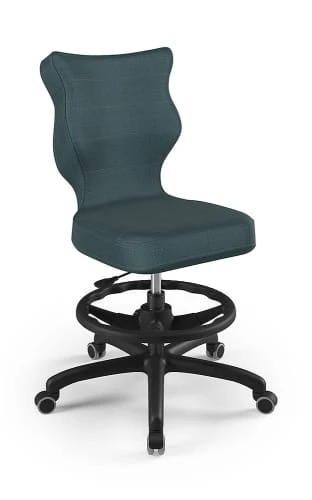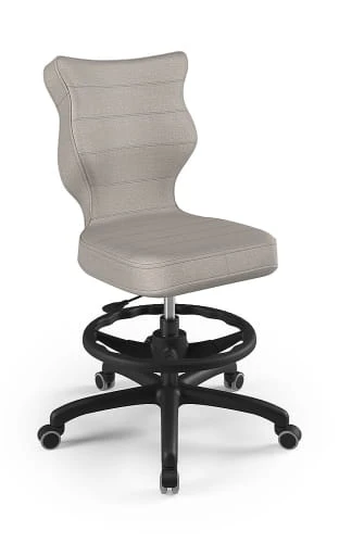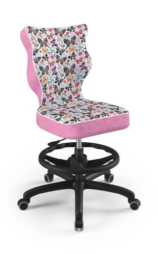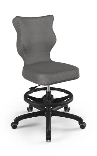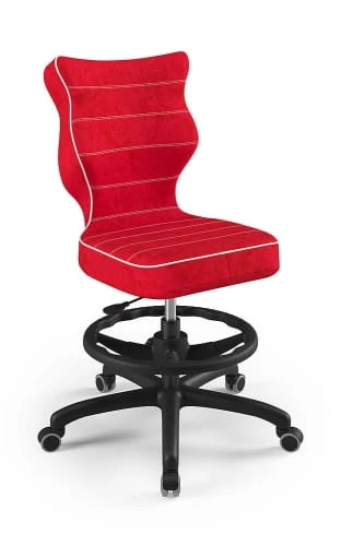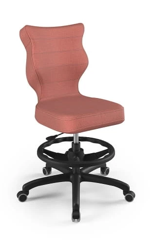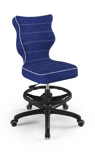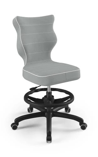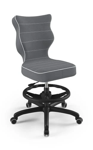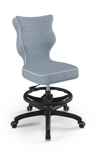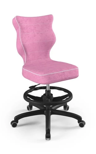 Ergonomiczne krzesło Petit z podnóżkiem w formie ringu posiada specjalny profil, który zapewnia prawidłową postawę podczas nauki czy zabawy.