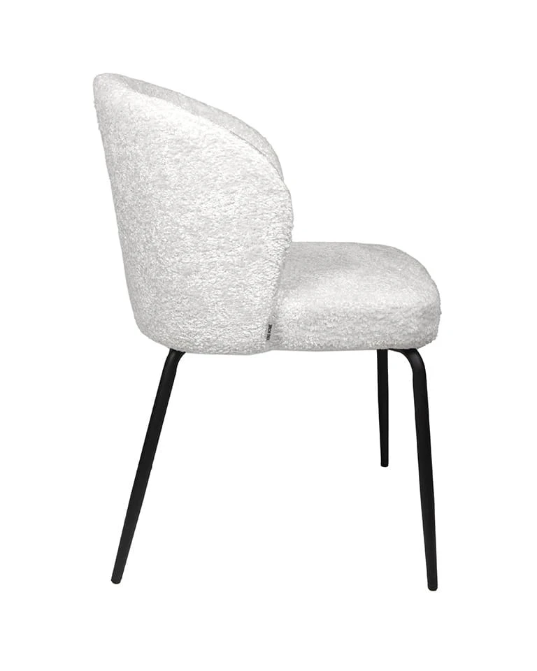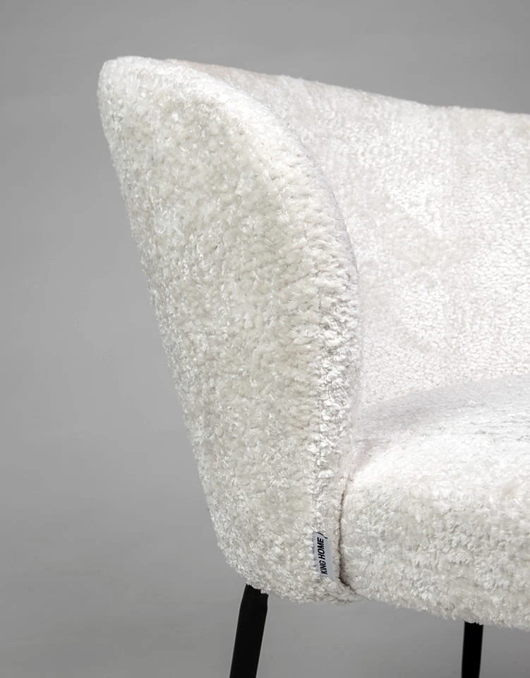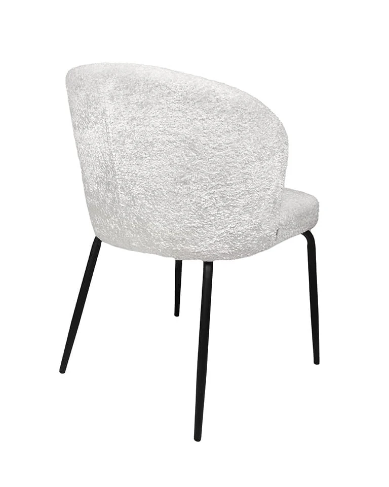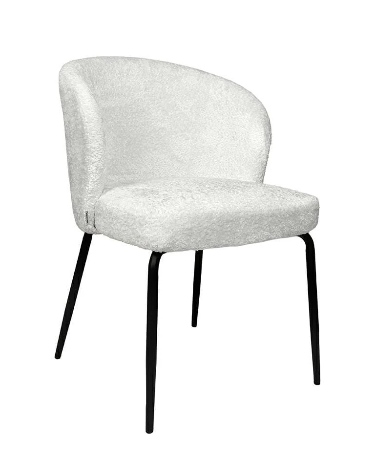 Krzesło GRETA to nowoczesny i elegancki mebel, który doskonale wpasuje się w różnorodne aranżacje wnętrz. Jego siedzisko pokryte jest białą tkaniną szenilową, charakteryzującą się wyjątkową miękkością i komfortem użytkowania. Zaokrąglone oparcie zapewnia ergonomię na najwyższym poziomie, umożliwiając wygodne wsparcie dla pleców.