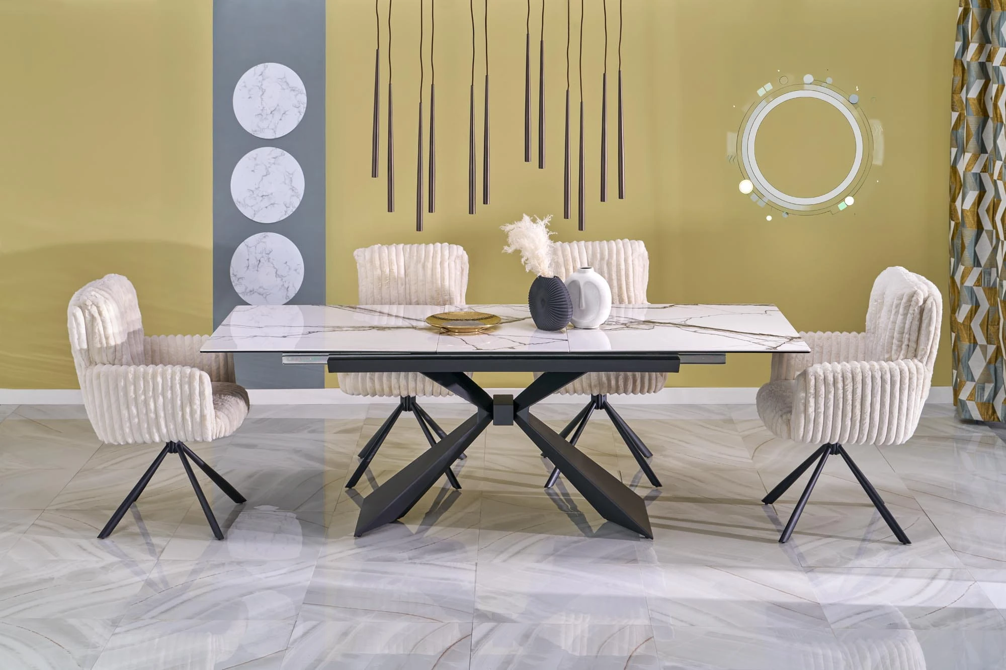 Postaw na elegancję i komfort z krzesłem tapicerowanym Halmar K572 w tkaninie Vito w kolorze kremowym. Ten nowoczesny model łączy subtelny design z wyjątkową wygodą, dzięki czemu doskonale sprawdzi się w jadalni, salonie czy gabinecie. Kremowa tapicerka wykonana z trwałej i przyjemnej w dotyku tkaniny Vito nadaje wnętrzu lekkości oraz ponadczasowego charakteru. Dodatkową zaletą krzesła K572 jest funkcja obrotu, która zapewnia swobodę ruchów i jeszcze większy komfort podczas codziennego użytkowania. Stabilna podstawa z metalu gwarantuje wytrzymałość i bezpieczeństwo, a całość prezentuje się niezwykle nowocześnie i stylowo.