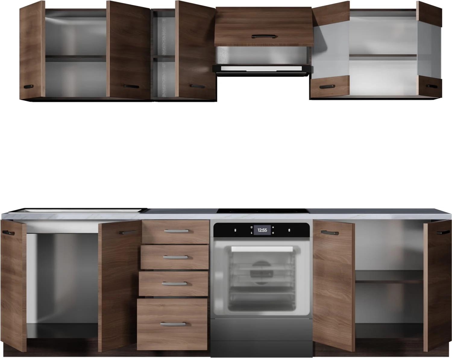 Szerokość łączna górnych wiszących szafek wynosi 260 cm.