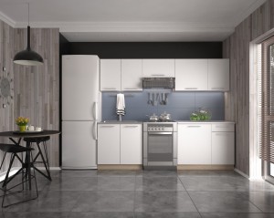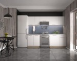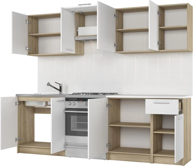 Daria 240 o białych frontach, korpusie w kolorze dąb sonoma oraz białym blacie to kuchnia do samodzielnego montażu o nowoczesnej stylistyce. Kuchnia przeznaczona jest do pomieszczeń średnich oraz mniejszych.