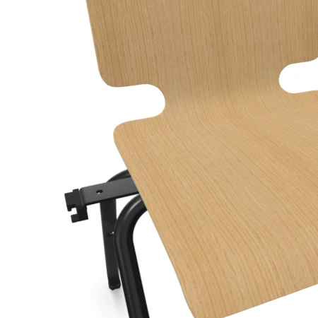 Połączenie naturalnej sklejki bukowej z czarną, stalową konstrukcją zapewnia trwałość oraz uniwersalny wygląd. Dodatkowe podłokietniki z drewnianą nakładką znacząco zwiększają komfort siedzenia i ułatwiają wstawanie.