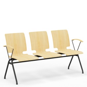 Ławka AXO 51 trzyosobowa z podłokietnikami – sklejka bukowa / czarna rama