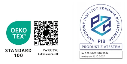 Pokrowiec został wyposażony w technologię aktywnych probiotyków Purotex®, która skutecznie ogranicza obecność roztoczy kurzu domowego. Więcej informacji na temat tej innowacji znajdziesz w artykule „Technologia Purotex®” w zakładce Porady.