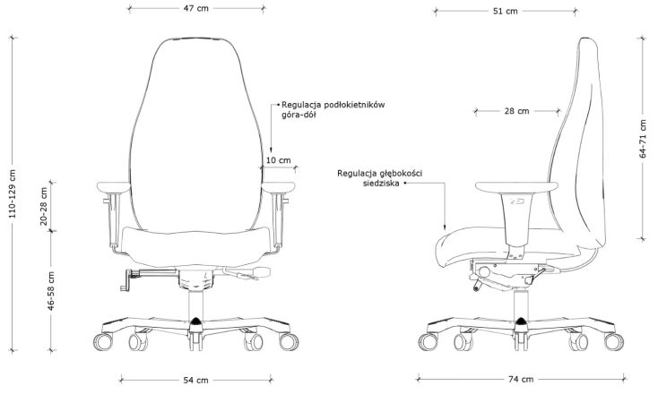 - Regulacja podłokietników (góra-dół)