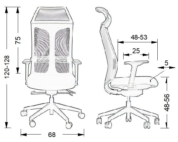 Siatka na oparciu oraz zagłówku - bardzo wytrzymała tkanina o wyraźnym wzorze siatki. Ma znakomite właściwości cyrkulacji powietrza przez co jest często stosowana na oparciach foteli biurowych. Dodatkowym atutem siatki jest wysoka wytrzymałość mechaniczna, termiczna oraz właściwości dopasowania się do kształtu. Sprawia to, że siatka jest uznawana za materiał poprawiający ergonomię foteli.