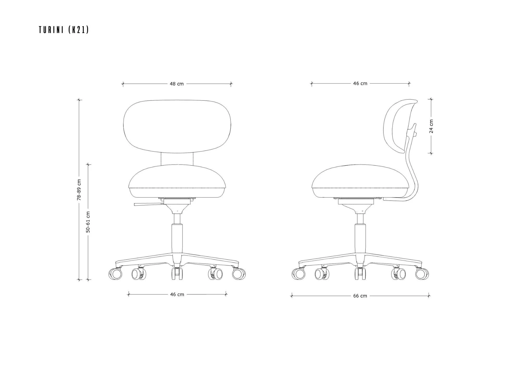 Matowa, czarna podstawa nadaje stołkowi elegancki, industrialny wygląd, który pasuje zarówno do nowoczesnych, jak i klasycznych wnętrz. Kompaktowe wymiary czynią go idealnym wyborem do mniejszych przestrzeni, gdzie liczy się funkcjonalność i estetyka. Dzięki połączeniu wygody i stylu Turini świetnie sprawdzi się zarówno w domowym gabinecie, jak i w przestrzeni coworkingowej.