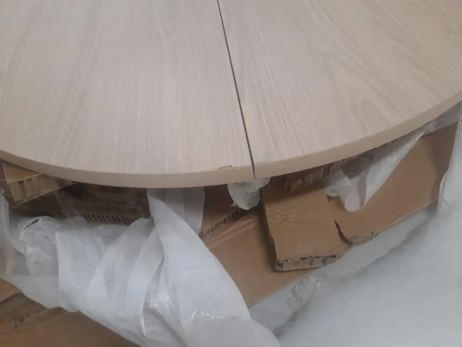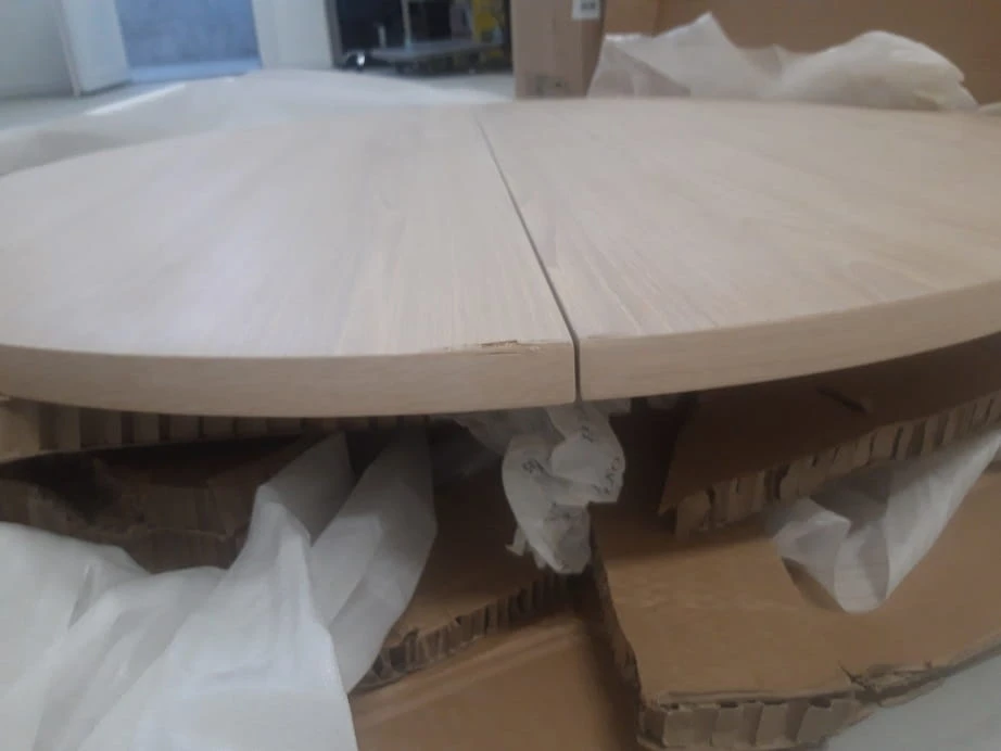 - nieskręcany, fabrycznie nowy, obity blat w jednym miejscu i zniszczony karton (uszkodzenia transportowe), pełna gwarancja