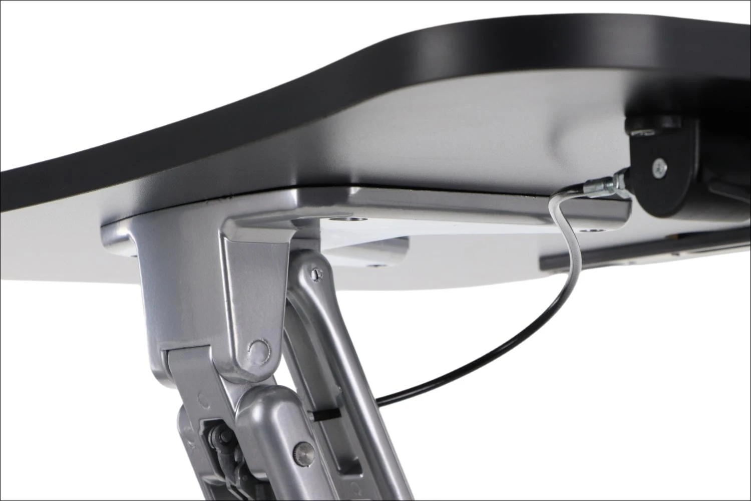 Mechanizm oparty jest o siłownik pneumatyczny - za pomocą dźwigni możemy wyregulować oraz zablokować wymaganą wysokość blatu.
