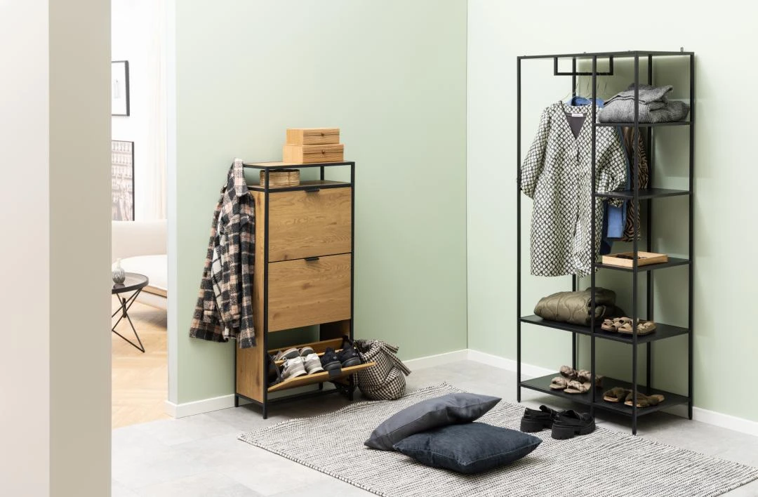 Garderoba Newcastle posiada nogi wykonane ze stali malowanej proszkowo na kolor czarny. Nogi posiadają plastikowe stopki zabezpieczające podłoge przed zarysowaniem.