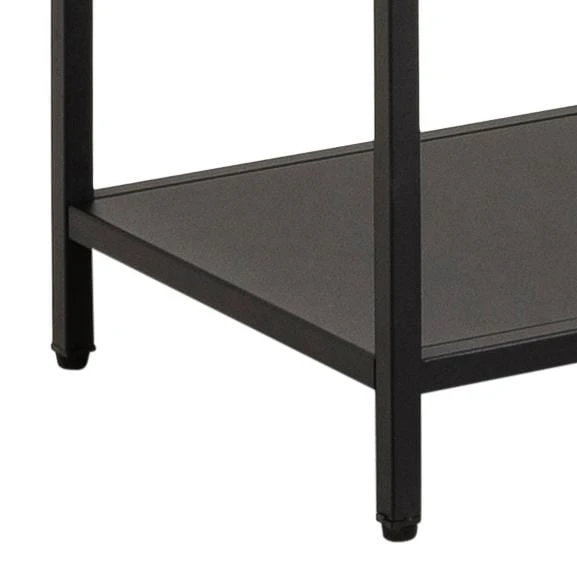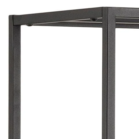 Regał Newcastle 165 cm posiada nogi wykonane ze stali malowanej proszkowo na kolor czarny. Nogi posiadają plastikowe stopki zabezpieczające podłoge przed zarysowaniem.