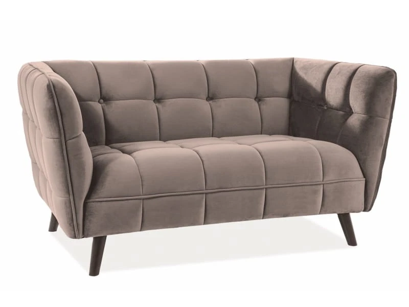 Sofa Castello 2 ma solidną konstrukcję, która gwarantuje, zarazem, trwałość i wytrzymałość. Jej siedzisko i oparcie, obite tkaniną aksamitną (velvet), zapewniają doskonałe wsparcie dla pleców, a także przyjemne uczucie miękkości i wygody. Podłokietniki dodatkowo podnoszą komfort użytkowania.