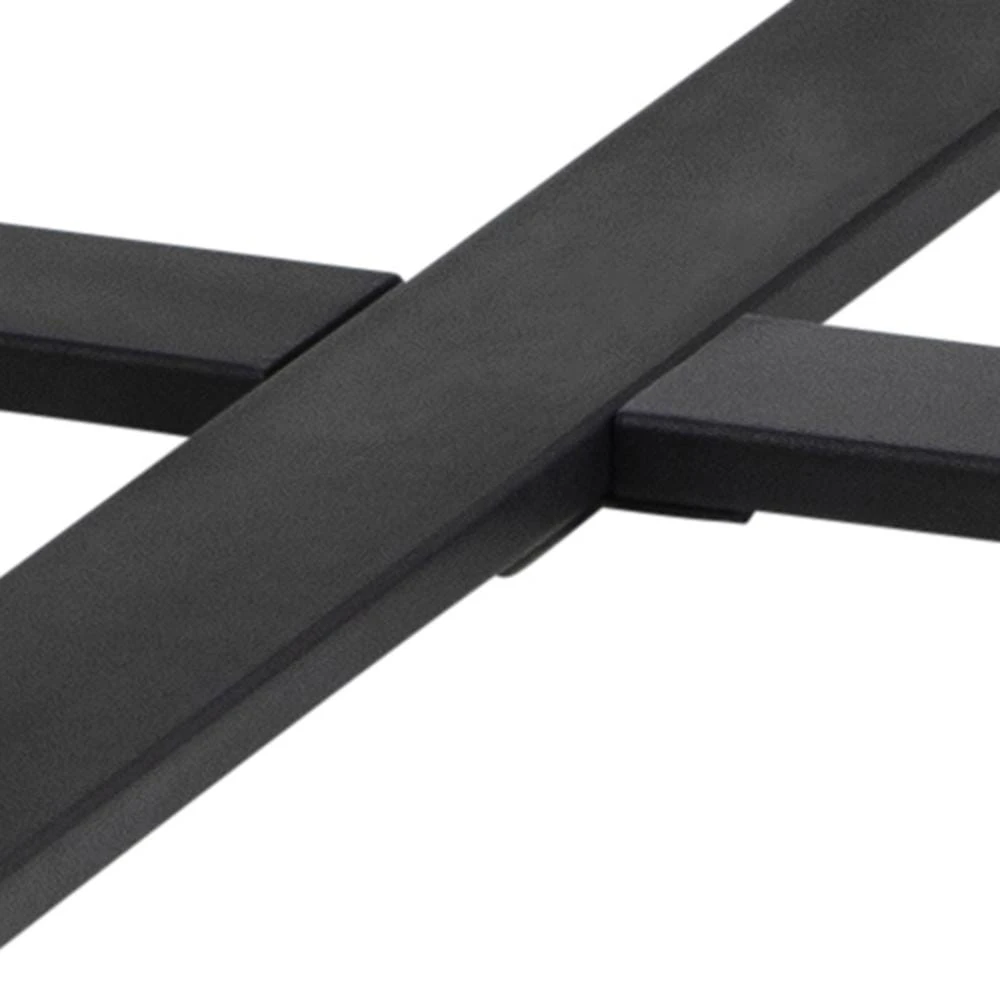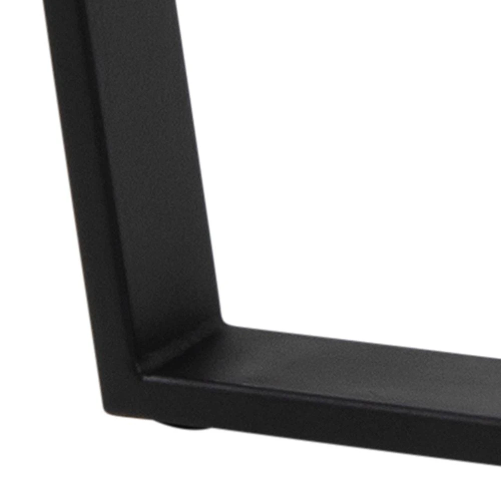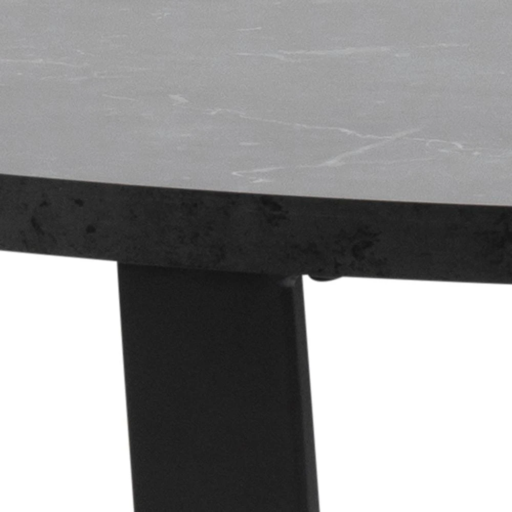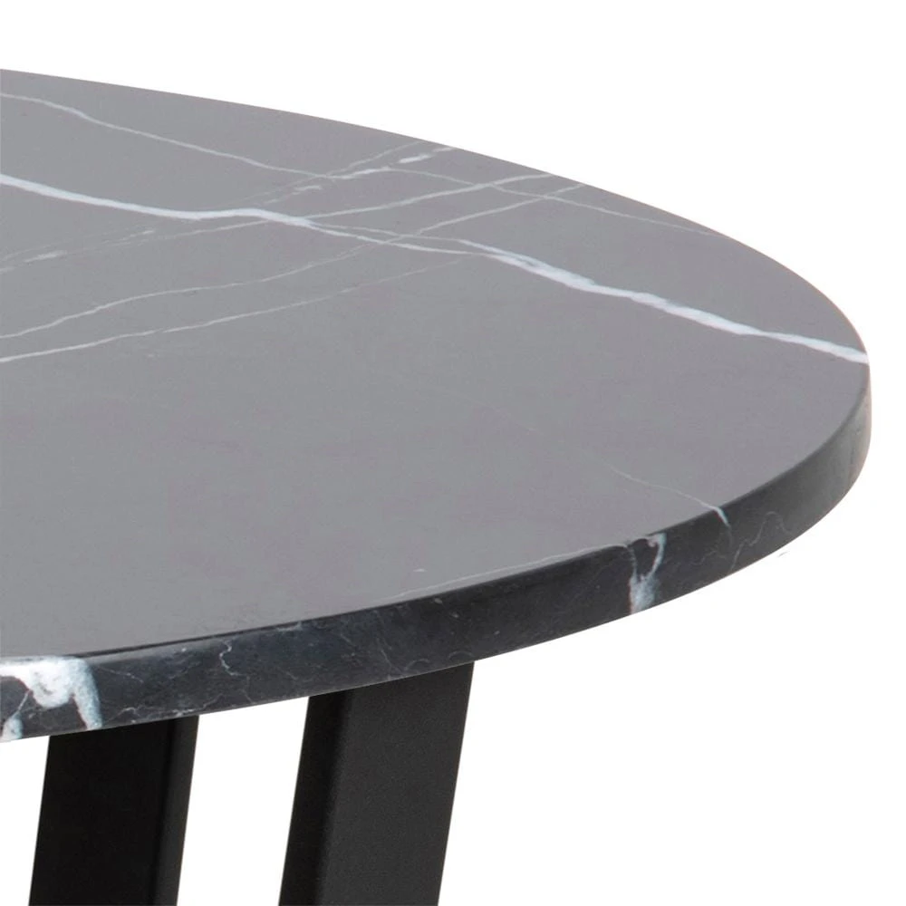 Korpus stołu Amble został wykonany ze stali pomalowanej na kolor czarny, blat natomiast to płyta MDF imitująca czarny marmur.