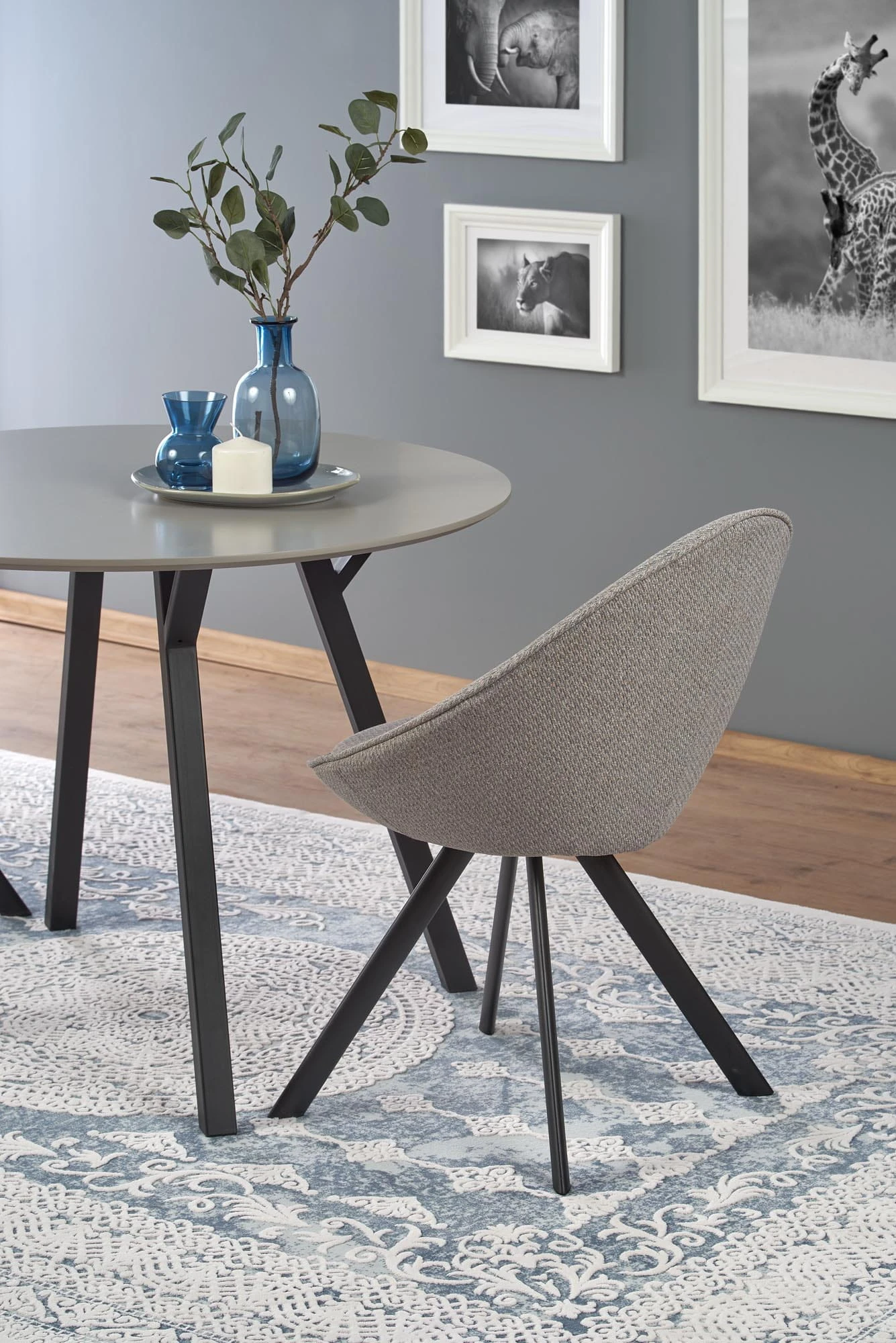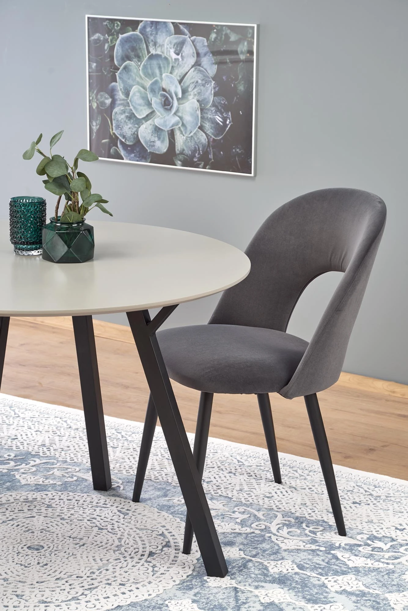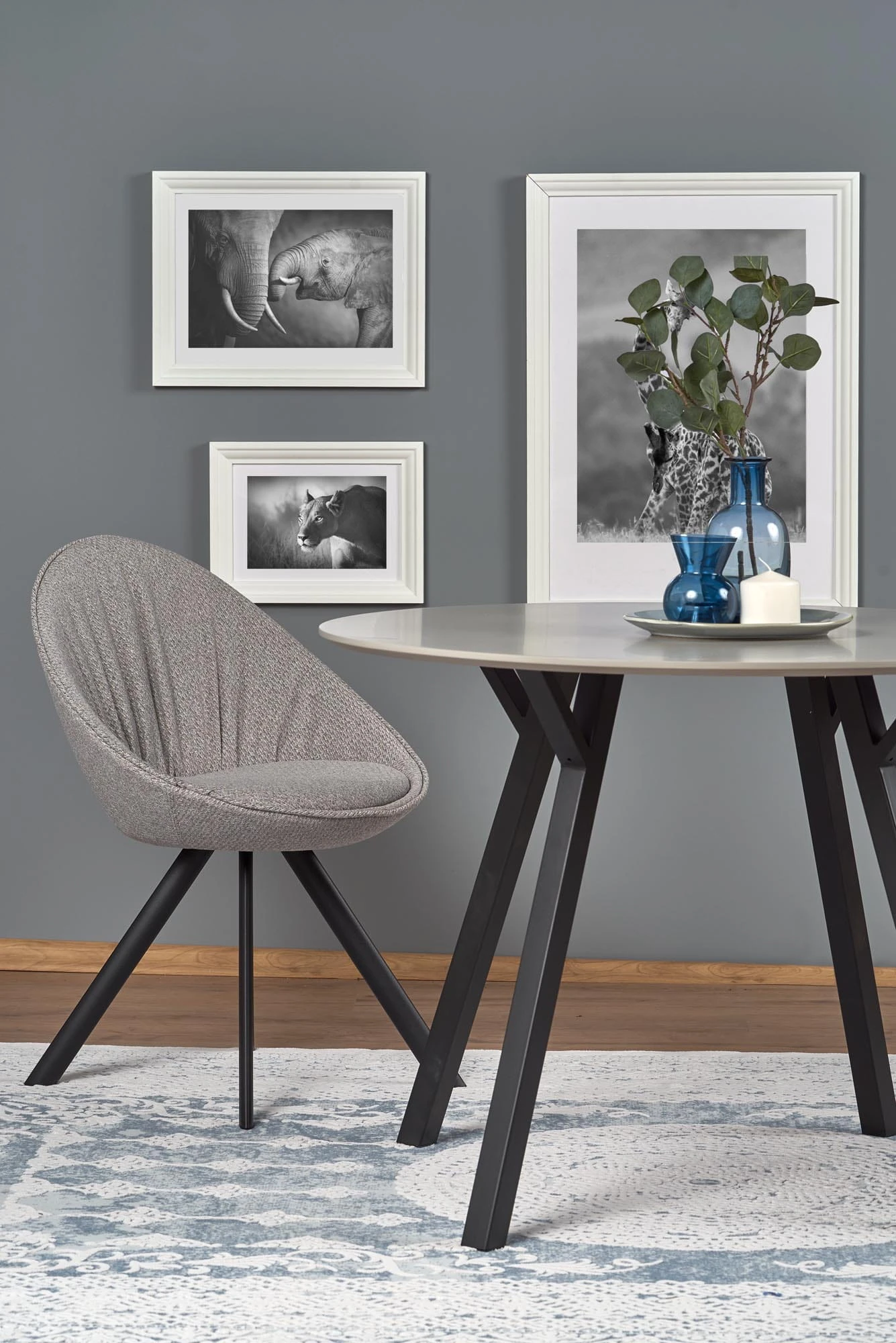 Stół BALROG w kolorze jasny popiel to mebel o wyjątkowo czystej, współczesnej formie, łączący w sobie elegancję minimalizmu i subtelny industrialny charakter. Jego okrągły blat o średnicy 100 cm przyciąga uwagę prostotą i lekkością wizualną – nie jest masywny, dzięki czemu doskonale wpisuje się w mniejsze wnętrza. Jasnoszara powierzchnia ma delikatne satynowe wykończenie, który nadaje jej świeżości i sprawia, że światło miękko się po niej rozprasza, podkreślając nowoczesny klimat stołu.