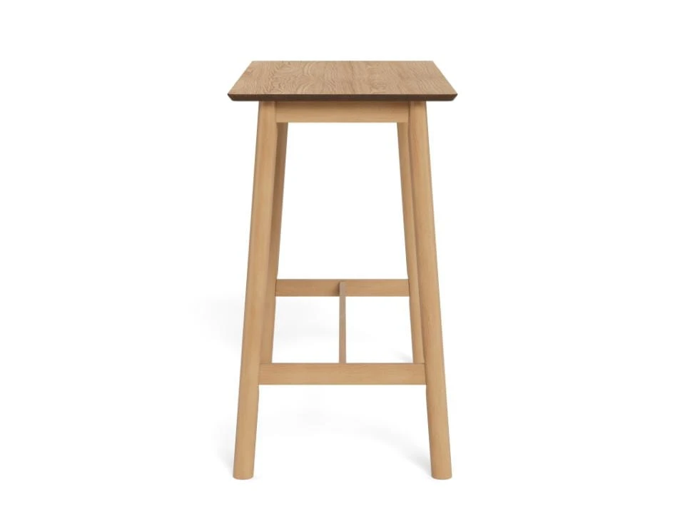 Stół barowy Barlow marki Actona to elegancki mebel o wymiarach 120x60x105 cm, który doskonale wpisuje się w styl skandynawski. Blat wykonany z forniru dębowego pokrytego lakierem matowym prezentuje naturalny wygląd i trwałość. Podstawa z litego drewna kauczukowego zapewnia stabilność i estetyczny wygląd. Stół charakteryzuje się prostokątnym kształtem i zaokrąglonymi krawędziami, co nadaje mu nowoczesny i przytulny charakter. Dzięki wysokości 105 cm idealnie sprawdzi się w kuchni lub jadalni jako miejsce do spożywania posiłków czy spotkań towarzyskich. Produkt posiada certyfikat FSC™, co świadczy o jego ekologicznym charakterze i pochodzeniu drewna z odpowiedzialnych źródeł.