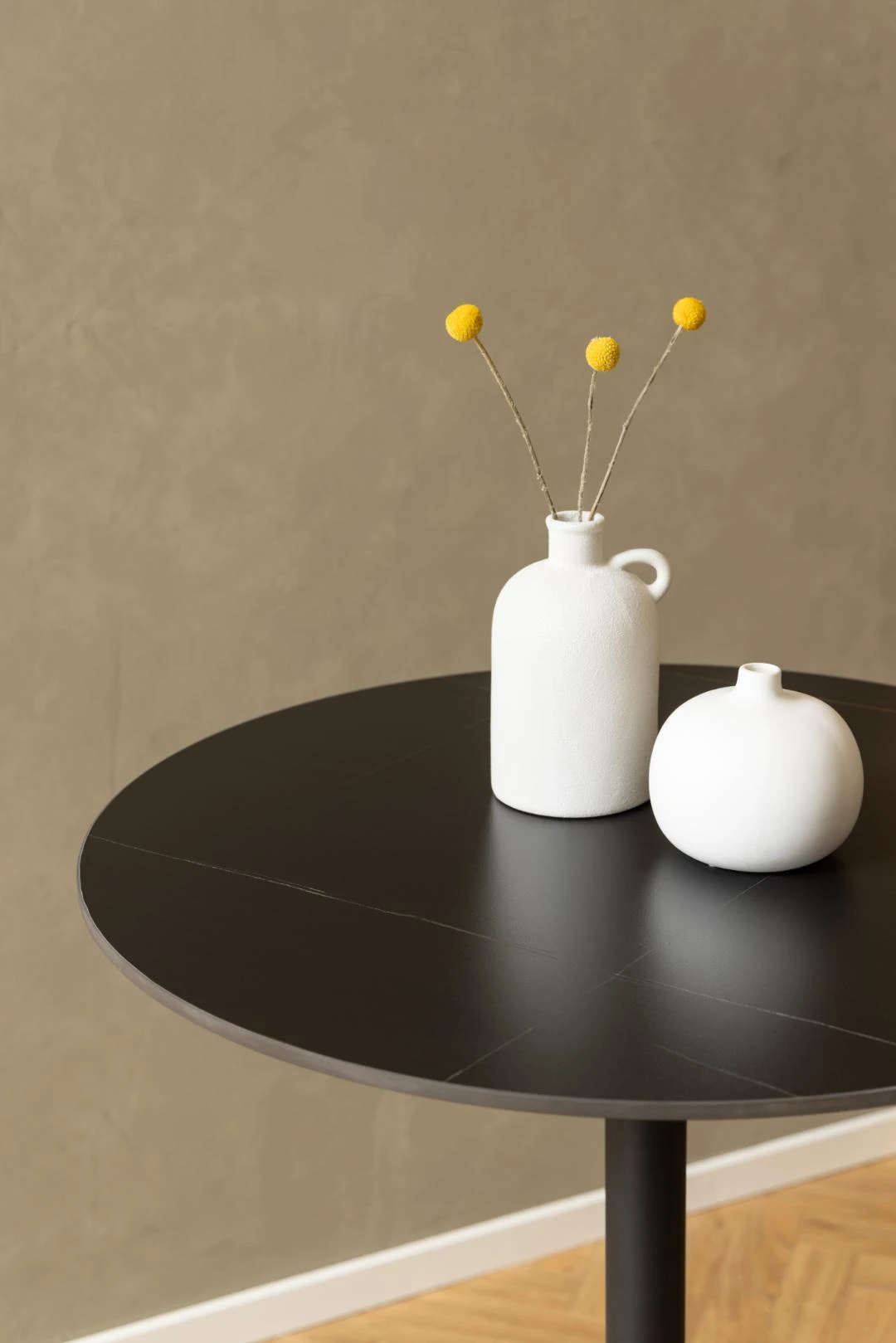 Stolik barowy Malta to stylowy i nowoczesny mebel, który doskonale sprawdzi się we współczesnych wnętrzach. Jego okrągły kształt pomaga stworzyć więcej przestrzeni w każdym domu, dzięki czemu idealnie nadaje się do mniejszych mieszkań. Pomimo skromnych rozmiarów ten stół barowy ma dużą osobowość. Blat stołu barowego Malta wykonany jest z ceramiki odpornej na ciepło i zarysowania. Posiada kontrastujące smugi, które dodają atrakcyjności wizualnej i sprawiają, że jest urzekającym punktem centralnym w każdym pomieszczeniu.