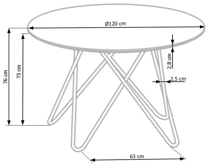 Średnica 120 cm zapewnia wygodne miejsce do codziennych posiłków i spotkań — stół jest przeznaczony dla 6 osób. Okrągły blat ułatwia ustawienie nakryć i pozwala swobodnie korzystać z przestrzeni przy stole bez ostrych narożników.