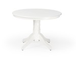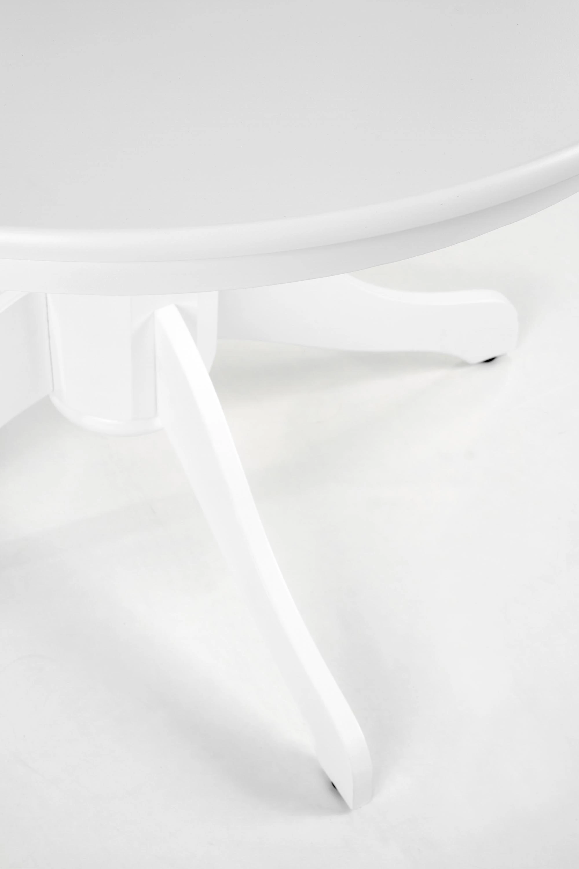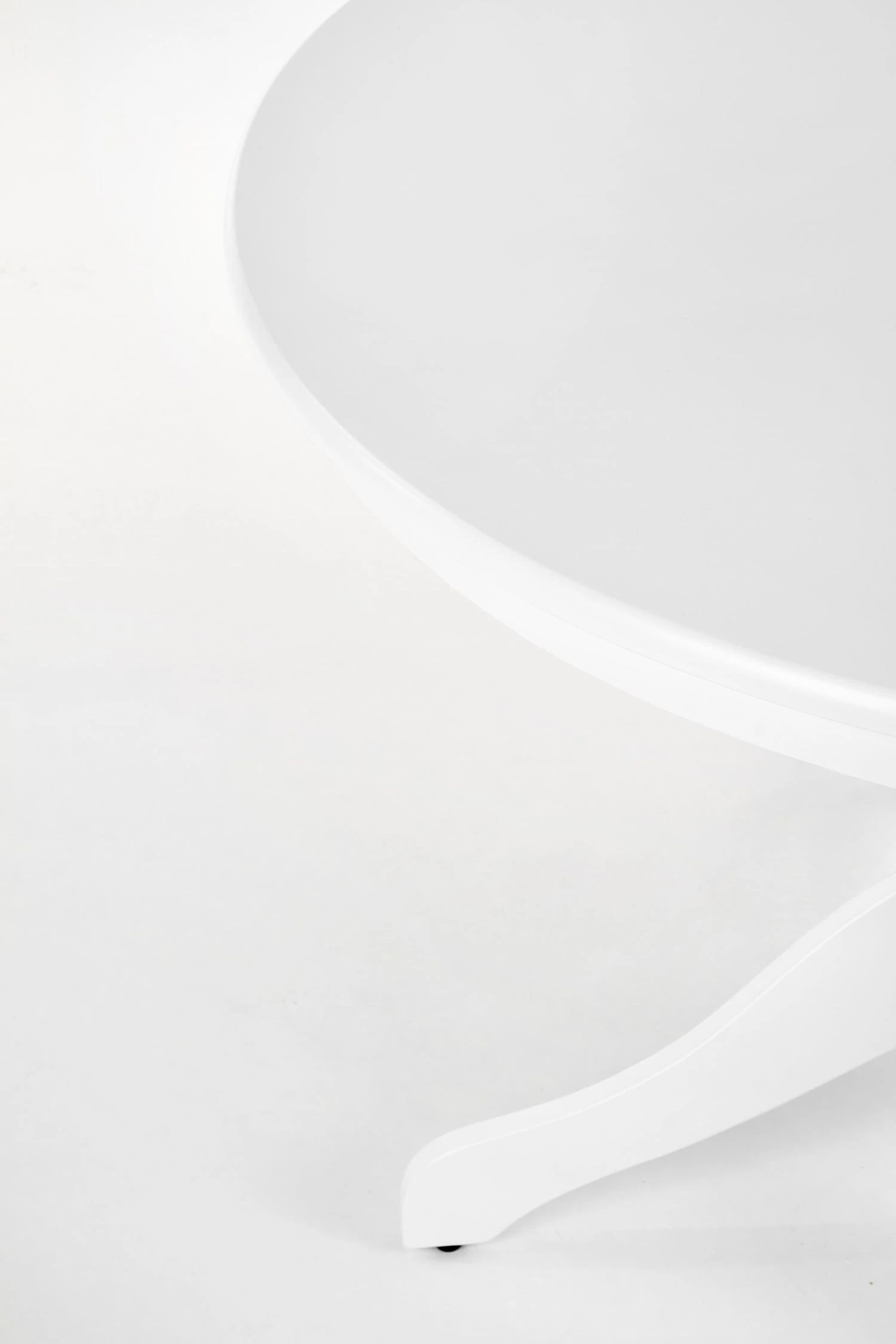 Blat ma średnicę 106 cm - wykonany z płyty MDF lakierowanej na biało.