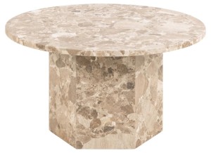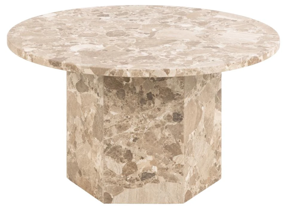 Stół kawowy Naxos to elegancki mebel wykonany z wysokiej jakości marmuru w odcieniu brązu z nutą latte. Okrągły blat o średnicy 80 cm podkreśla luksusowy charakter stołu, a naturalne wzory marmuru nadają mu unikalnego wyglądu. Dzięki solidnemu wykonaniu i wysokości 42 cm, stół jest nie tylko estetyczny, ale także praktyczny, idealny do codziennego użytku w salonie. Stół Naxos to połączenie wyrafinowanego designu i trwałości, które wprowadzi do wnętrza odrobinę klasy i prestiżu.