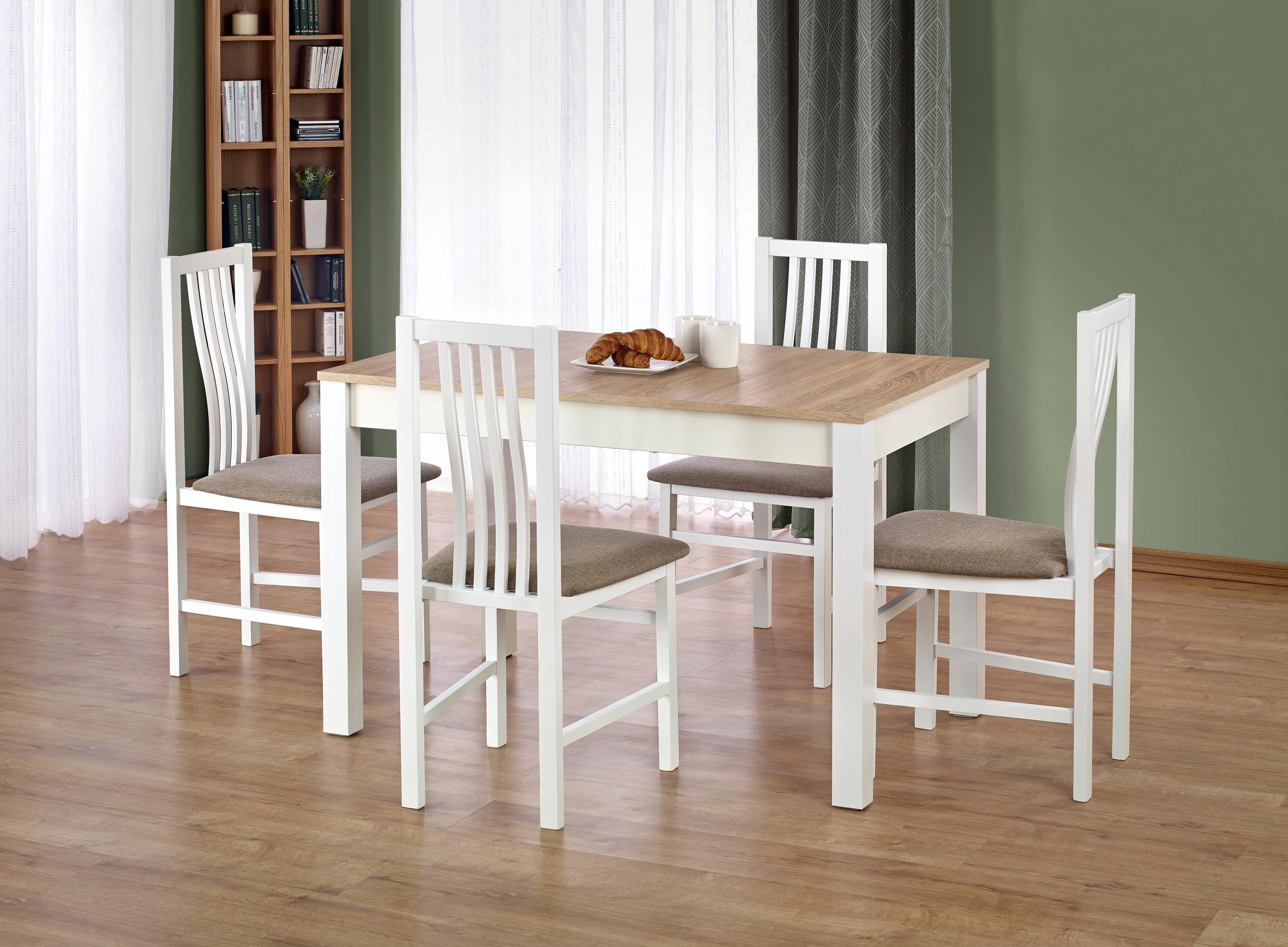 Jest to nowoczesny i funkcjonalny stół, wykonany z wysokiej jakości materiałów, który zapewnia wieloletnią trwałość oraz interesujący wygląd. Doskonale pasuje do każdego rodzaju wnętrz. Aranżacja stołu Ksawery w kolorze dąb sonoma/biały - krzesła nie wchodzą w skład zestawu.