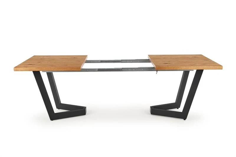 Stół rozkłada się w bardzo prosty sposób - specjalny stelaż pozwala rozsunąć stół i w jego środku zamontować dwa dodatkowe blaty - ma wtedy 250 cm szerokości.