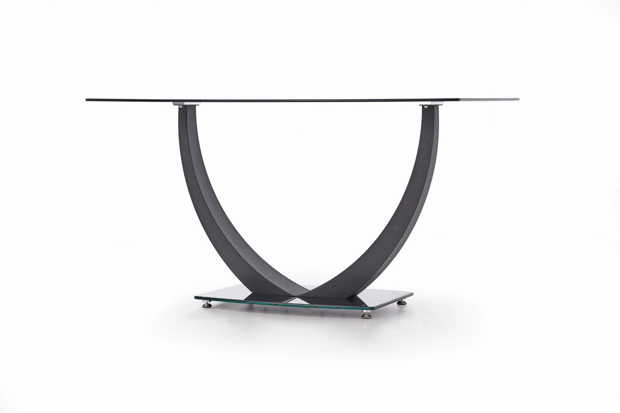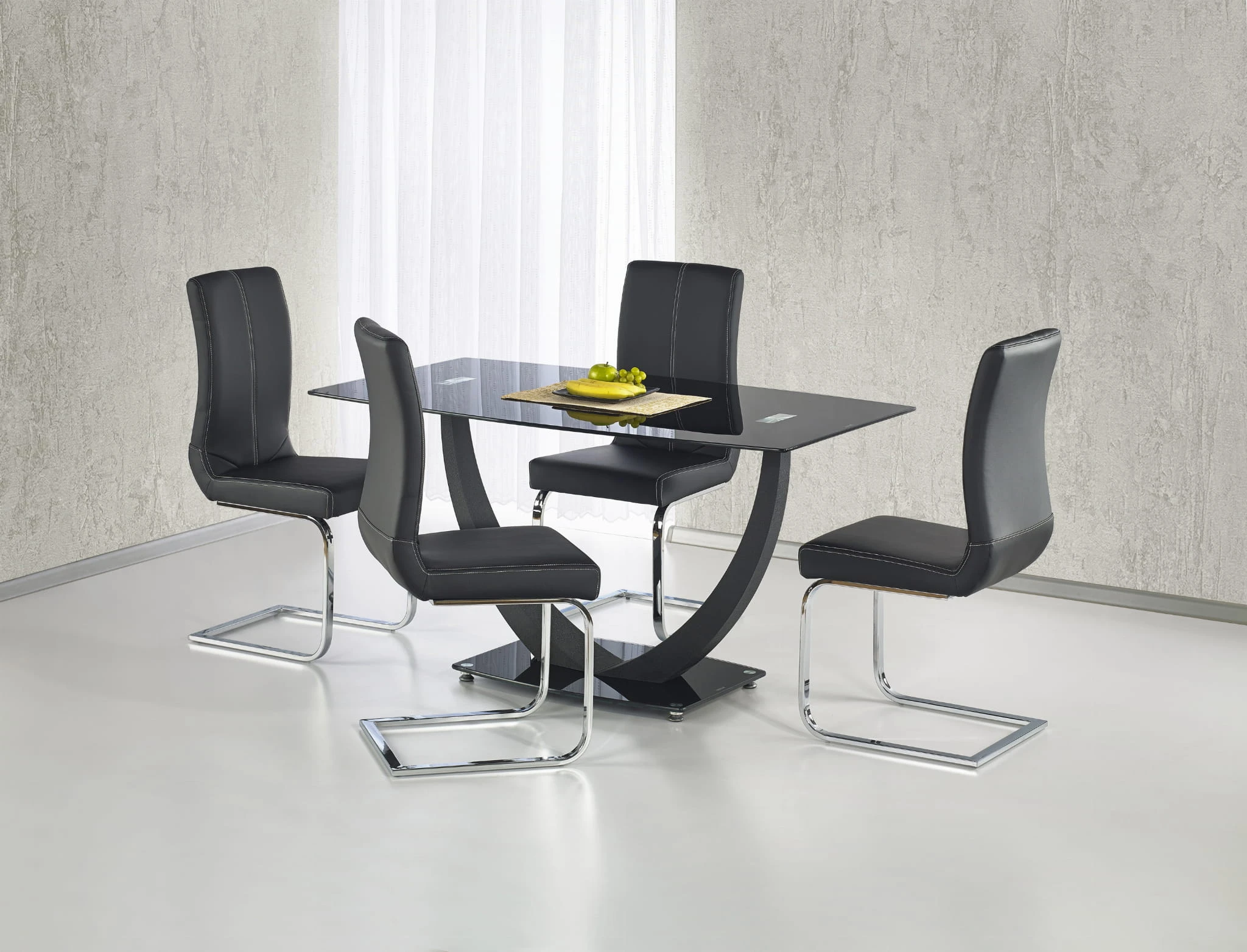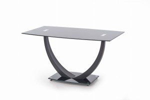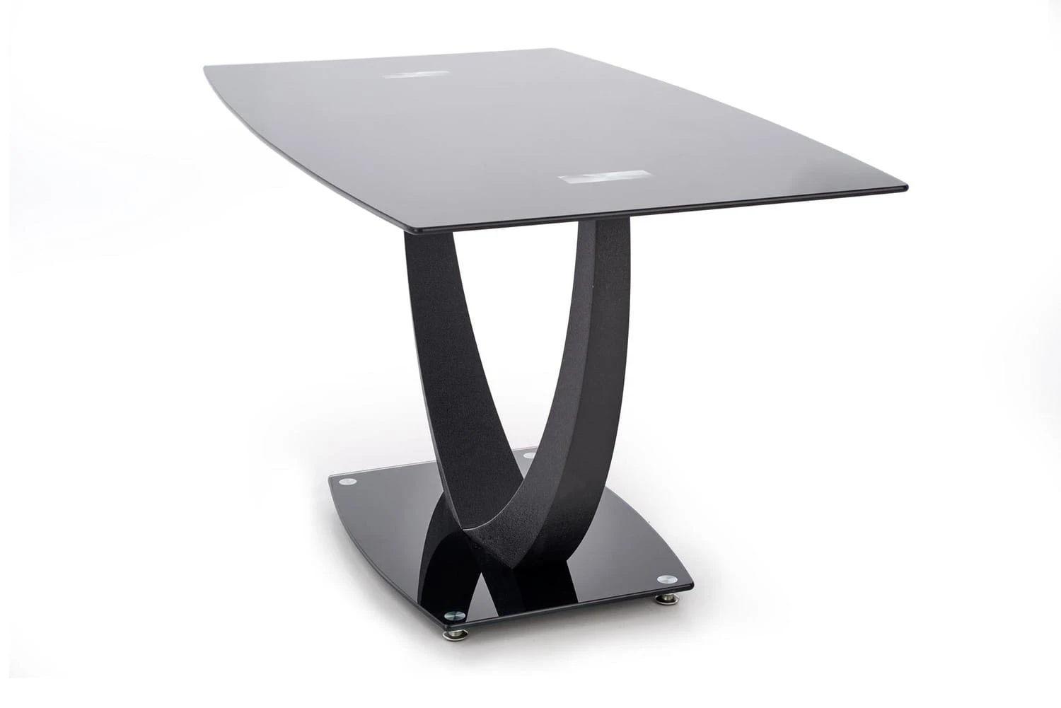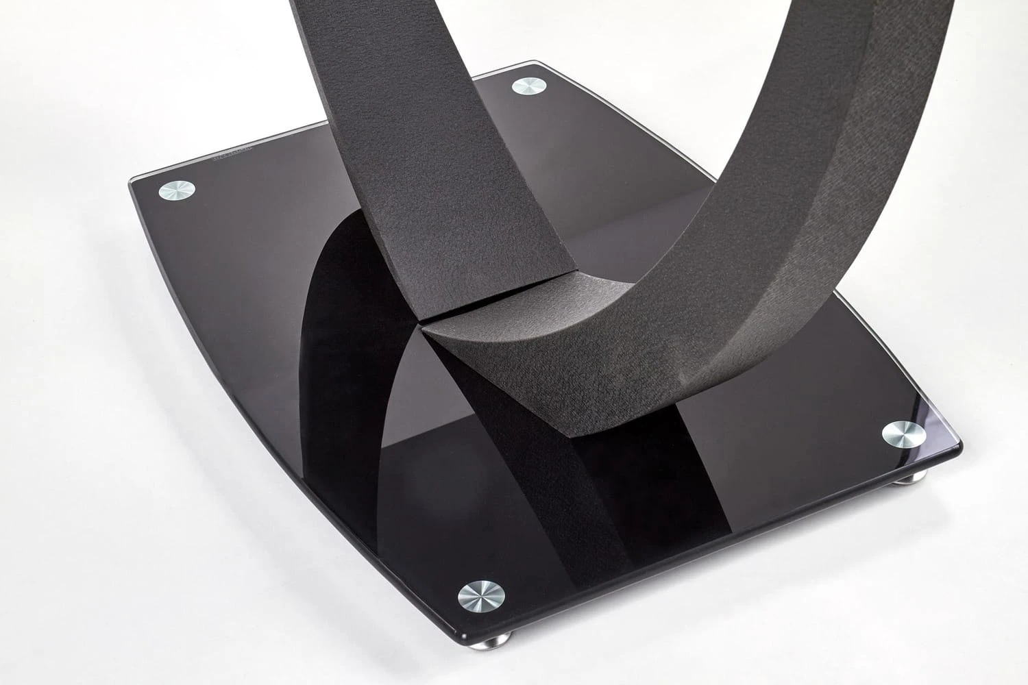 Stół Anton marki Halmar to nowoczesny mebel, który łączy wyrafinowaną prostotę z funkcjonalnością i designerskim akcentem. Blat o wymiarach 140 × 80 × 75 cm wykonany jest ze szkła hartowanego w kolorze czarnym, co nadaje mu elegancki połysk i umożliwia łatwe utrzymanie w czystości. Podstawa stołu stworzona została ze stali malowanej proszkowo na głęboki czarny kolor, przy czym jej forma inspirowana jest kształtem litery „U”, co dodaje całości lekkości i współczesnego charakteru.