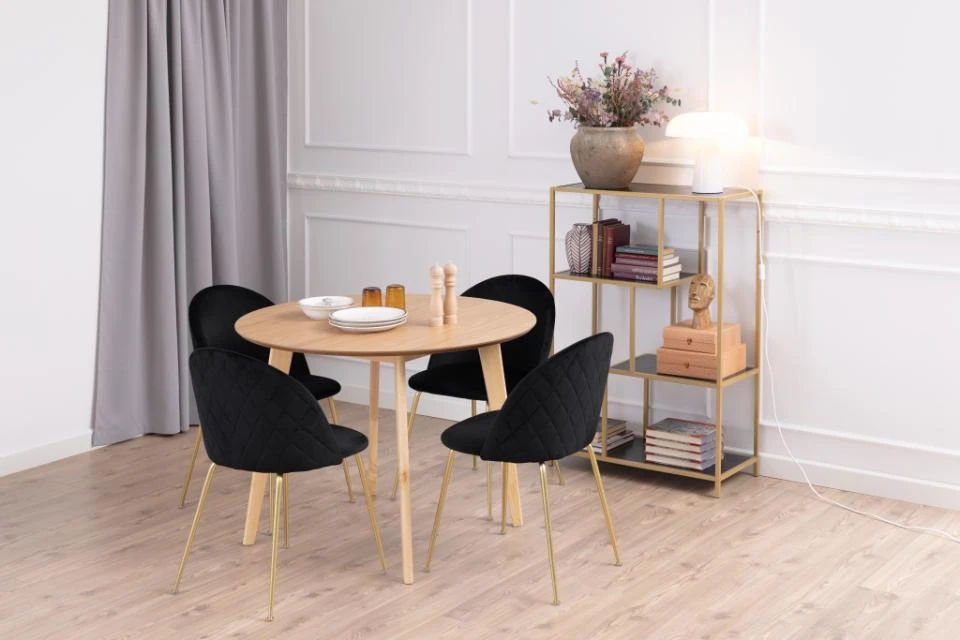 Stół Roxby ma minimalistyczny i zapraszający profil, który idealnie pasuje do mniejszych przestrzeni. Jego niewielkie rozmiary (średnica 105 cm, wysokość 76 cm) pozwalają na swobodne ustawienie go w pomieszczeniu, bez obawy o zdominowanie przestrzeni. Ponadto dzięki zastosowaniu solidnych materiałów stół jest bardzo stabilny i wytrzymały. Stół Roxby jest w stanie pomieścić do 4 osób, co czyni go idealnym rozwiązaniem dla rodzin i małych grup przyjaciół. Dzięki temu, że wszyscy siedzą blisko siebie, łatwiej jest prowadzić rozmowy i cieszyć się wspólnym czasem. Stół Roxby to nie tylko funkcjonalne, ale również stylowe rozwiązanie dla każdej jadalni.