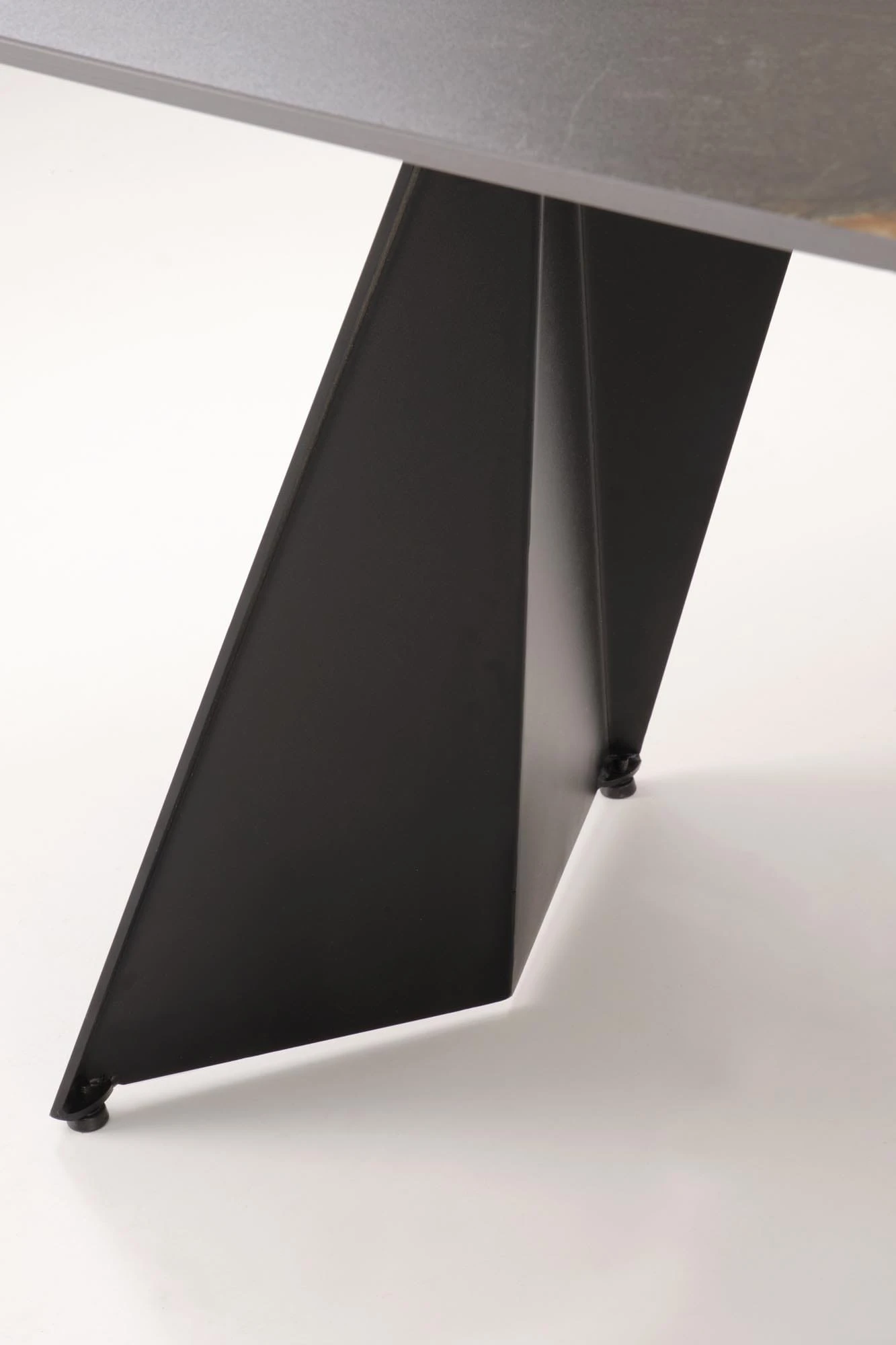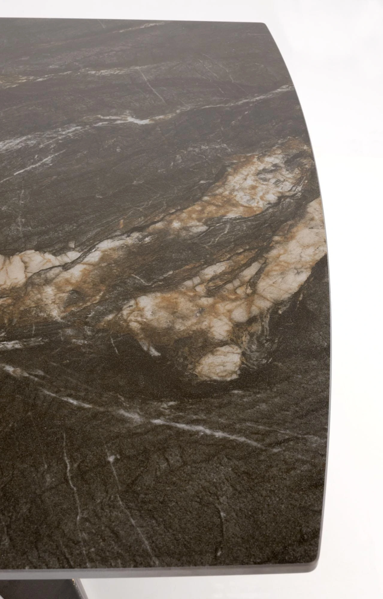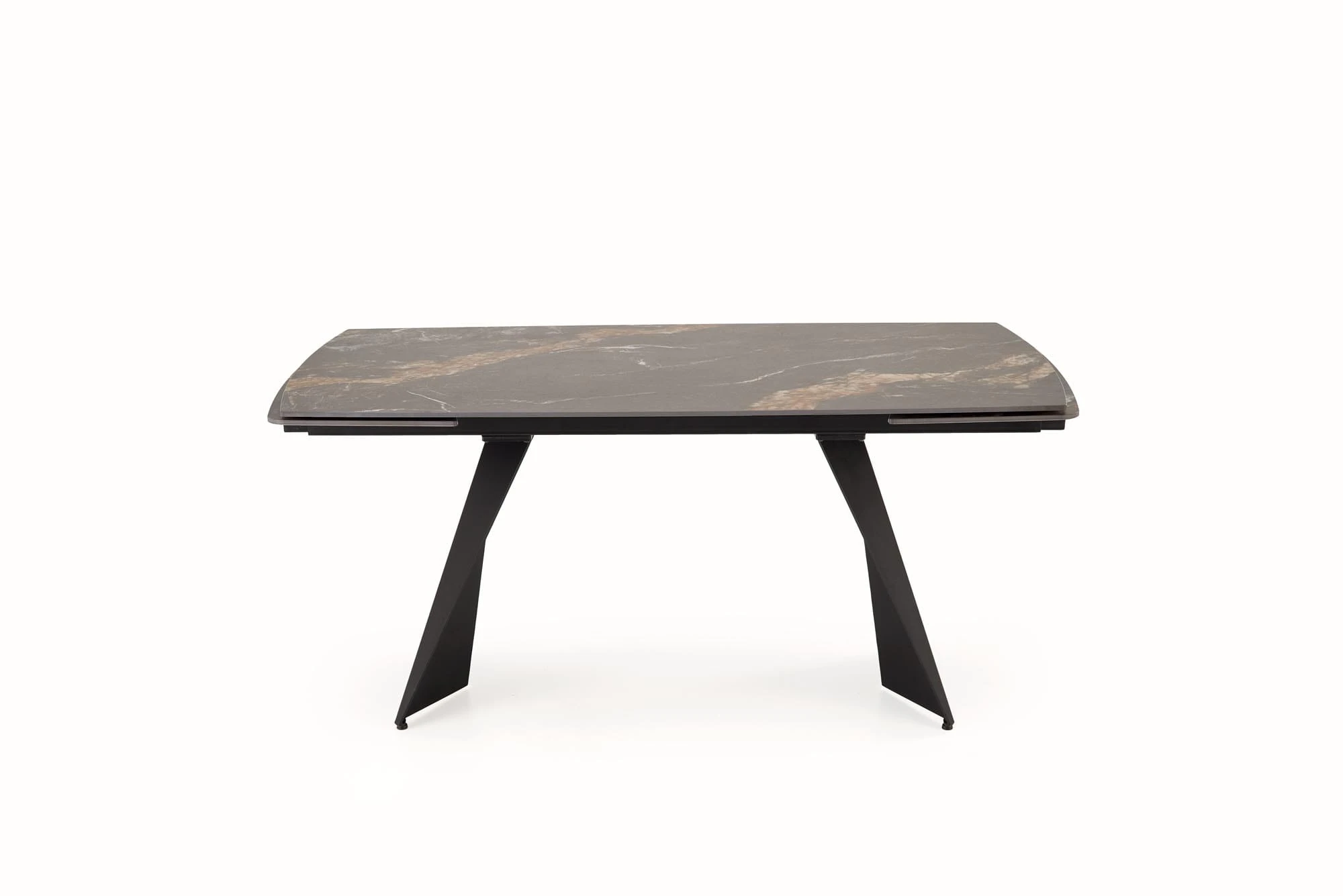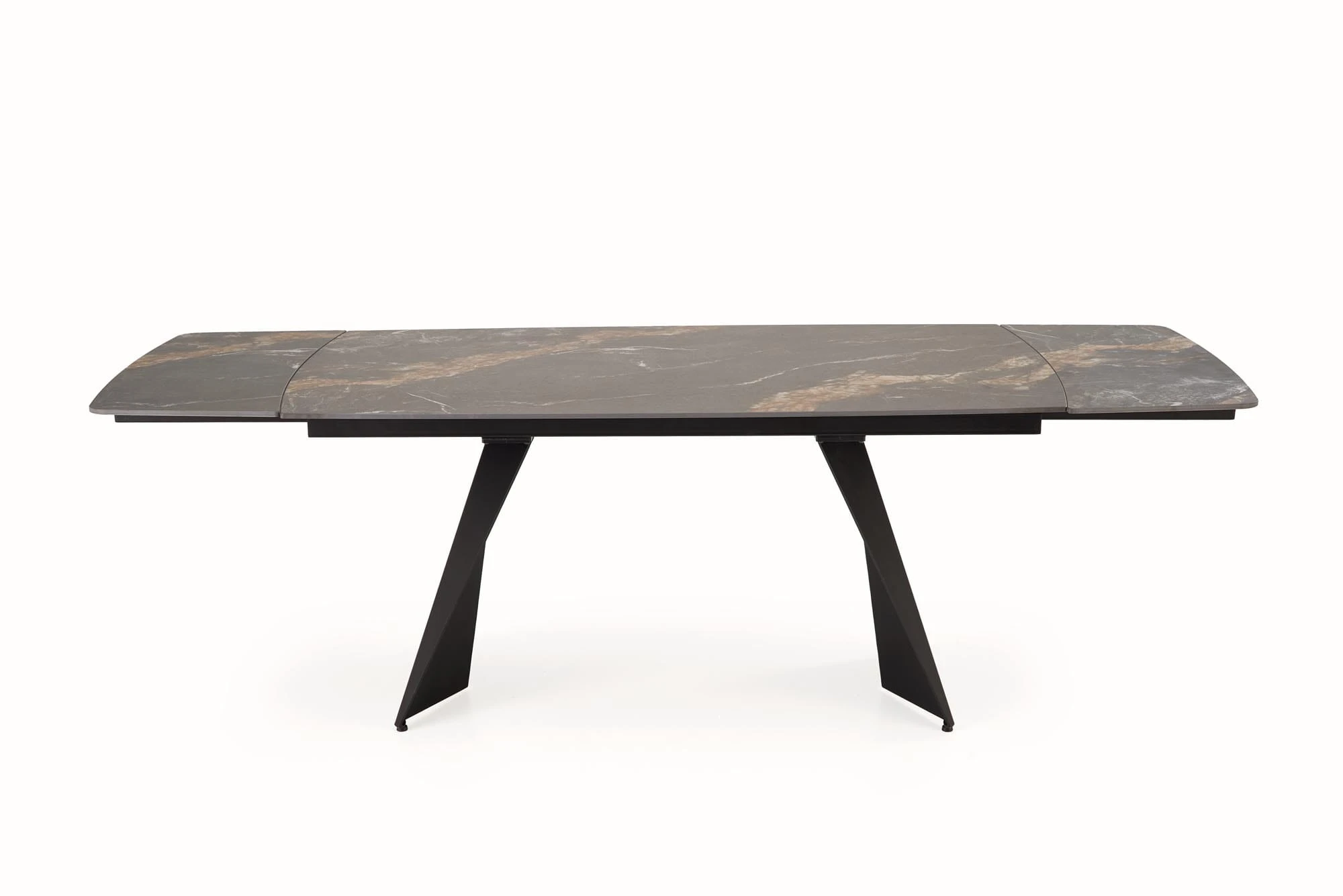 Blat wykonany został z trwałego spieku o strukturze nawiązującej do naturalnego marmuru. Połączenie głębokiej czerni i delikatnych żyłowań sprawia, że stół doskonale wpisuje się w nowoczesne, loftowe i eleganckie aranżacje.