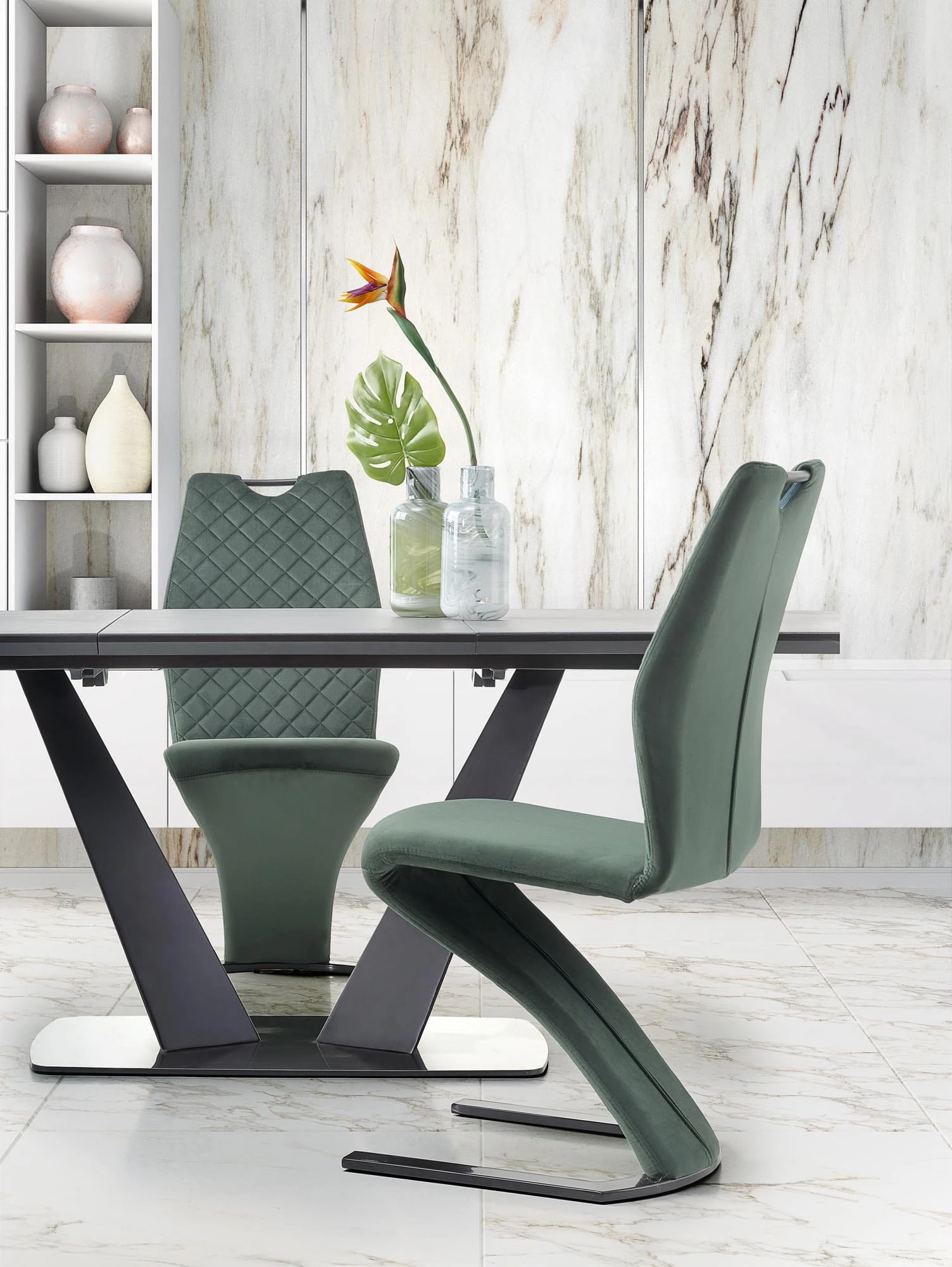 Geometryczna podstawa stalowa łączy klasykę z nowoczesnością – jej prosta forma kontrastuje z połyskiem blatu, tworząc zrównoważoną kompozycję. Pomimo rozbudowanego mechanizmu, stół zachowuje lekkość formy, a jednocześnie wygląda solidnie i pewnie.