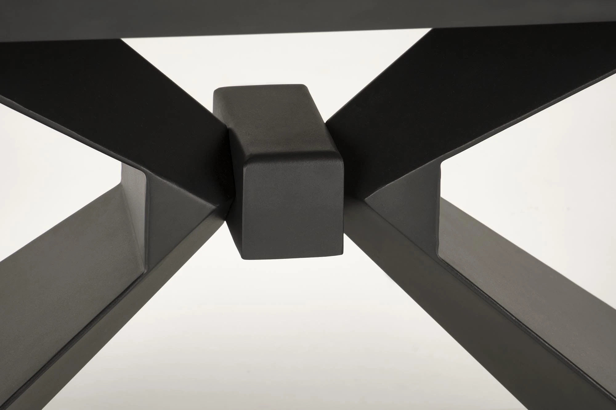 Podstawa stołu z czarnej stali malowanej proszkowo to mocny, stabilny fundament dla dużej powierzchni blatu. Wysokiej klasy metal zapewnia trwałość i odporność na codzienne użytkowanie, a jednocześnie podkreśla nowoczesną estetykę mebla.