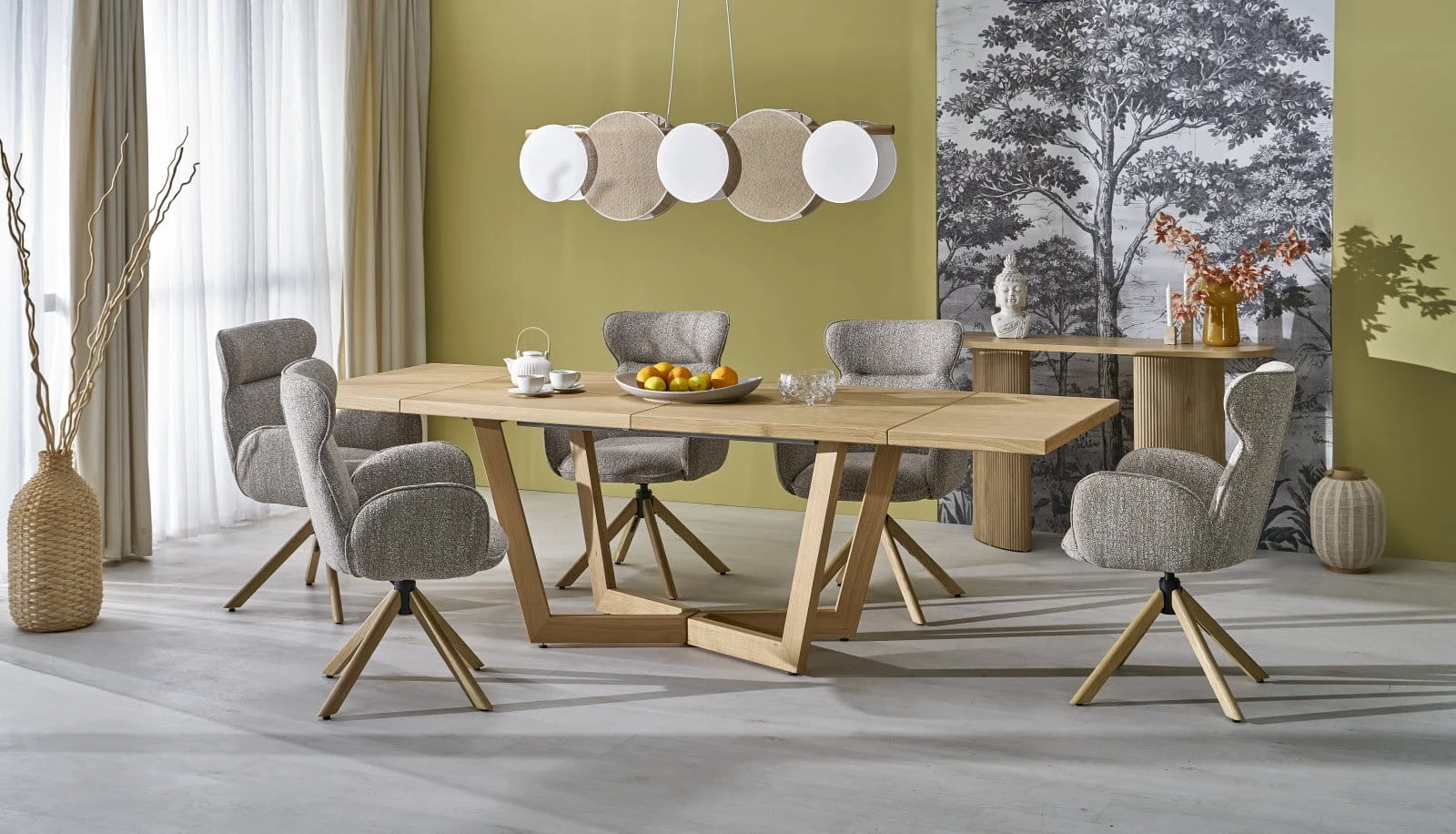 Stół rozkładany MASSIVE 3 marki Halmar to elegancki mebel łączący nowoczesny design z funkcjonalnością, idealny do przestronnych jadalni i salonów. Wykonany z wysokiej jakości materiałów, zapewnia trwałość i estetykę na lata. Naturalny kolor blatu podkreśla ciepły, minimalistyczny charakter stołu, nadając mu uniwersalny wygląd pasujący do różnych aranżacji. Stół opiera się na stabilnych nogach w naturalnym wybarwieniu, które harmonijnie komponują się z blatem - tworzy to elegancki i uniwersalny wygląd, wpisujący się w styl loftowy i industrialny.