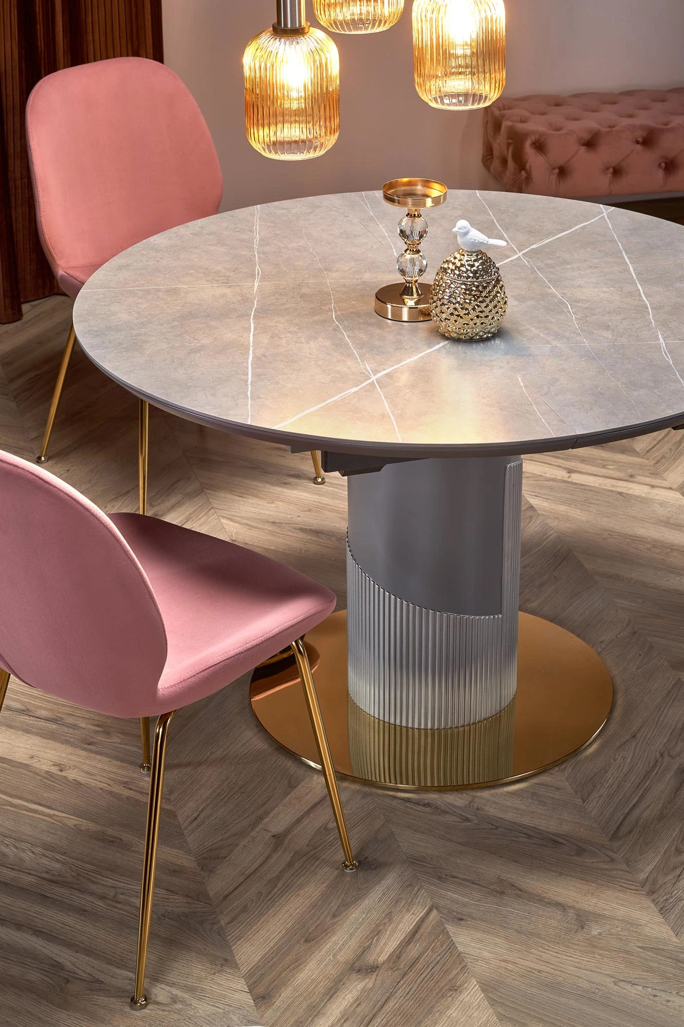 Stół rozkładany MUSCAT okrągły popielaty marmur 120 - 160 cm